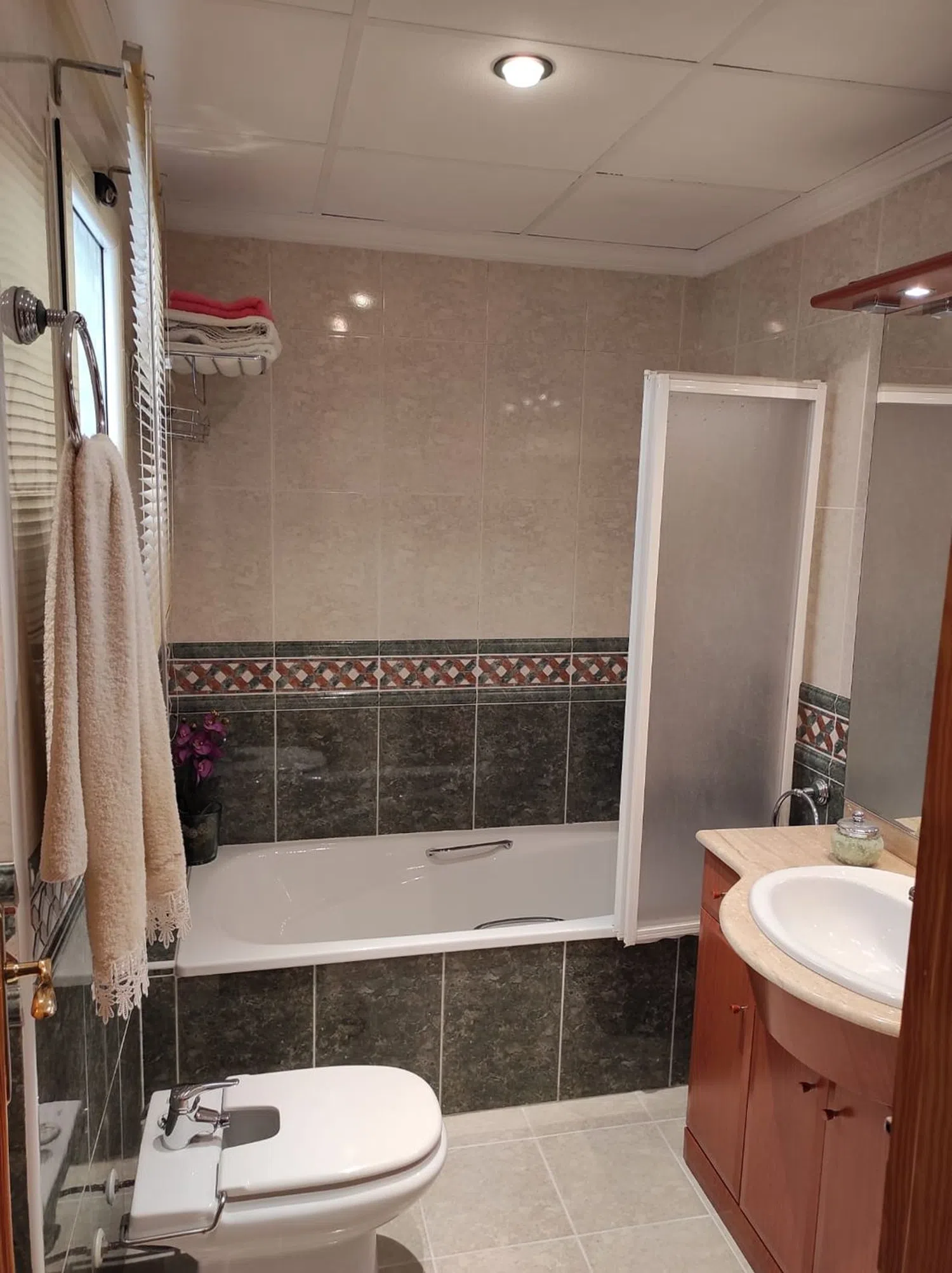 Piso 95 metros, todo exterior. En el precio incluye 1 trastero y 1 plaza de garaje. 2 Balcones, calefacción con caldera incluida. plato de ducha y bañera, hilo musical por toda la casa, toldos, mosquiteras, semi-amueblado. El ascensor llega al garaje, con la comodidad que supone esta ventaja.