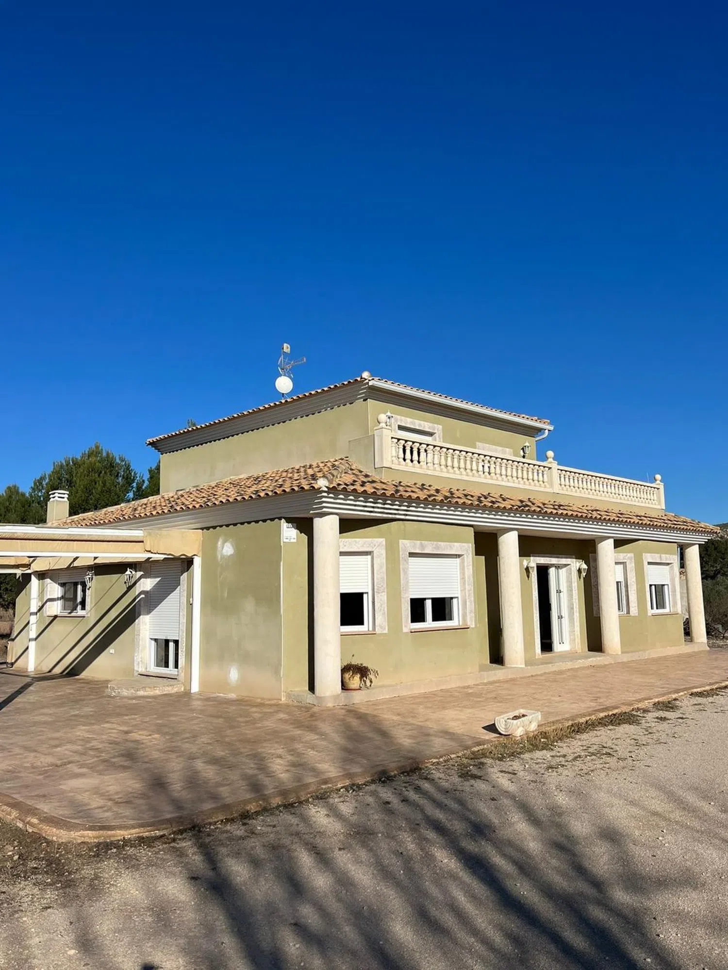 CHALET INDEPENDIENTE Vivienda de 202m2 útiles, ubicada en Paraje de las Fuentecillas, Villena, rodeada de paz y tranquilidad, cuenta con una parcela de 12.000m2 toda ella delimitada, con plantación de 60 olivos e infinidad de posibilidades a su alcance. En su interior podemos encontrar un amplio salón con mucha luz, gracias a sus grandes ventanales (todos los de la vivienda con persianas automáticas y mosquiteras), con acceso al porche, cocina de grandes dimensiones con una gran bancada donde poder trabajar sin falta de espacio y una despensa adicional. Cuenta también con 4 dormitorios dobles, y dos baños completos. En la segunda planta se encuentra el dormitorio principal con baño en suite, tanto con bañera como con ducha y un gran vestidor con salida a la terraza superior. Si buscas tranquilidad, naturaleza y espacio, esta es su vivienda. No dude en contactar con nosotros e iremos a que la conozca.