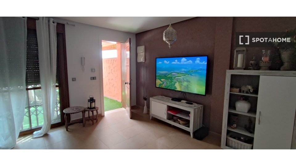 Diese bezaubernde 3-Zimmer-Wohnung in Pulpí bietet ein komfortables Wohnumfeld mit trendiger Einrichtung. Sie verfügt über eine individuelle Klimaanlage für jedes Zimmer, eine voll ausgestattete Küche mit Geschirrspüler und Backofen, eine gemeinschaftlich genutzte Waschmaschine und WLAN-Zugang. Rauchen und Haustiere sind erlaubt, was die Wohnung noch vielseitiger macht. Gas- und WLAN-Rechnungen sind ebenfalls im Preis inbegriffen, was den Mietern zusätzlichen Komfort bietet. Die Immobilie wurde nicht persönlich verifiziert, Spotahome garantiert jedoch, dass alle Vermieter ein strenges Überprüfungsverfahren zur Sicherheit der Mieter durchlaufen.