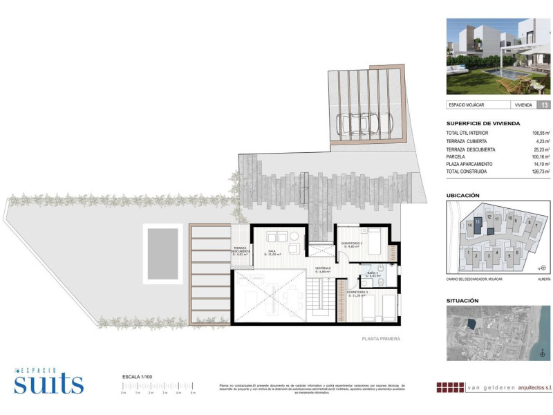 .Promoción de obra nueva en Mojácar, Almería. Chalets adosados de2 plantas y 3 habitaciones.PiscinaJardín Plaza de parking.