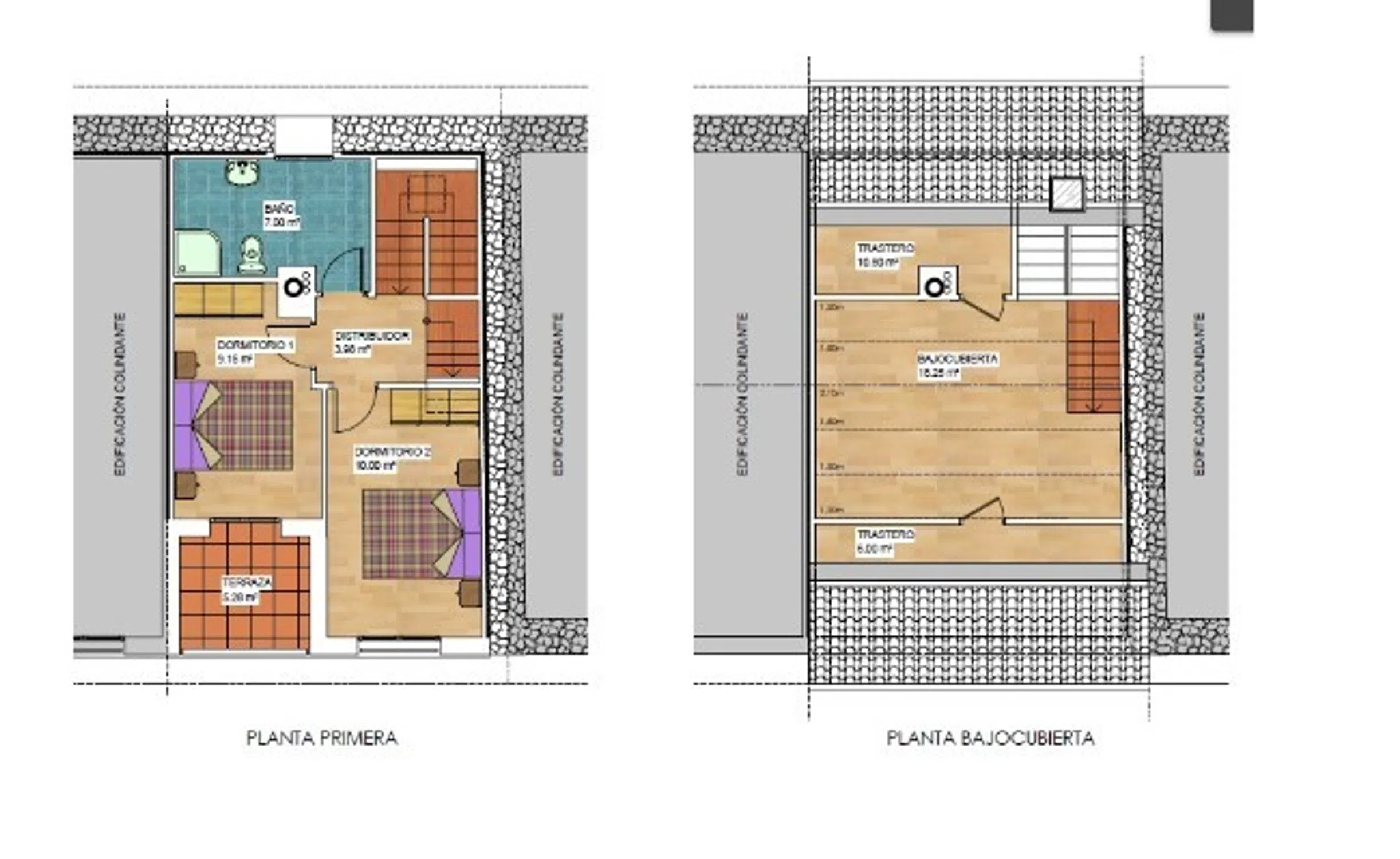 Cuenta con una planta principal con cocina y salón abiertos, una planta intermedia con dos habitaciones, terraza y balcón de maravillosas vistas, un baño y un tercer piso en bajo-cubierta