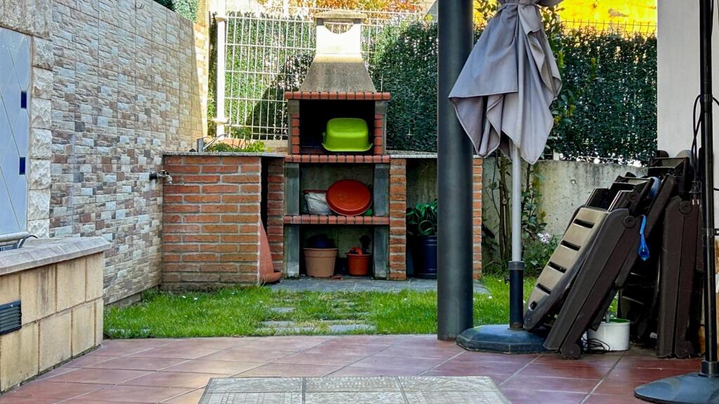 Está distribuido en dos plantas, en la principal encuentras un precioso salón comedor con salida al porche lateral donde dispones de una barbacoa de obra y un pequeño jardín trasero. A la derecha se encuentra una cocina equipada con todos los electrodomésticos, entre ellos un frigorífico de dos puertas.