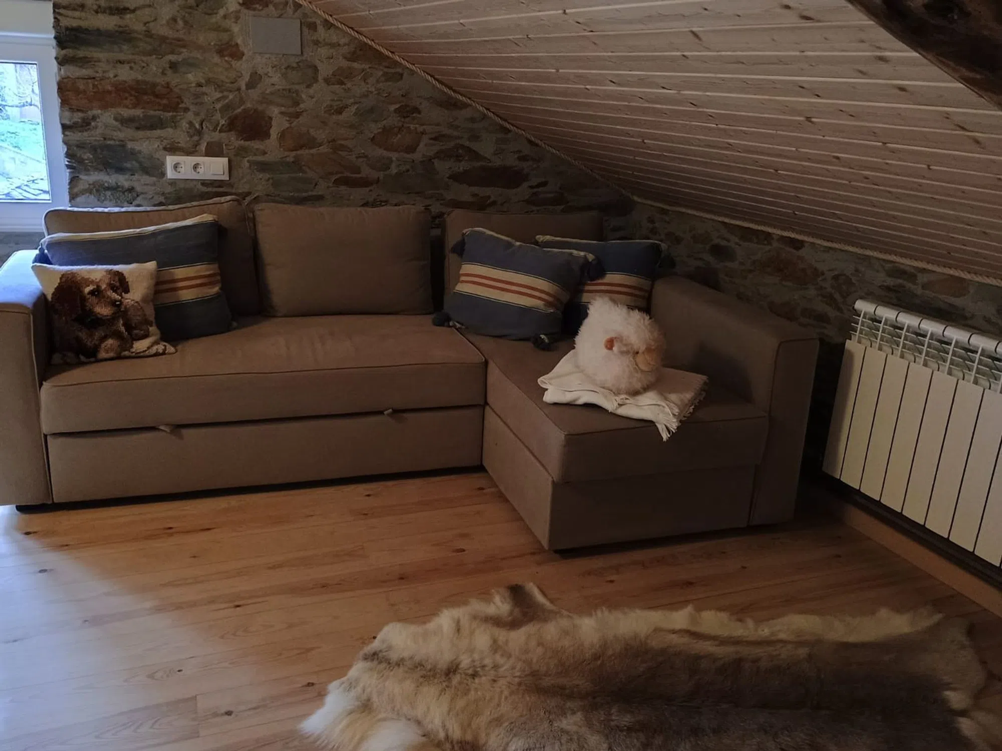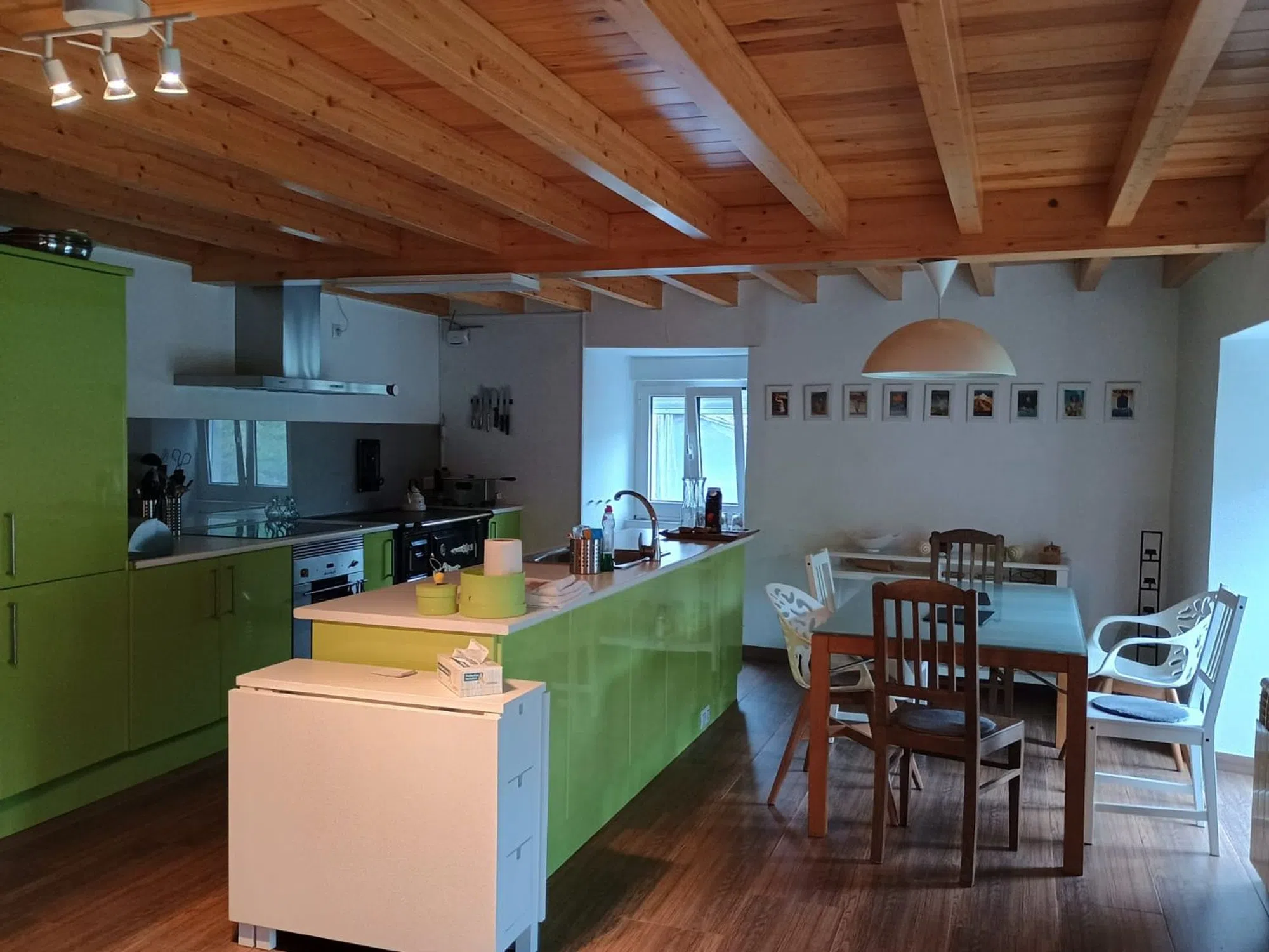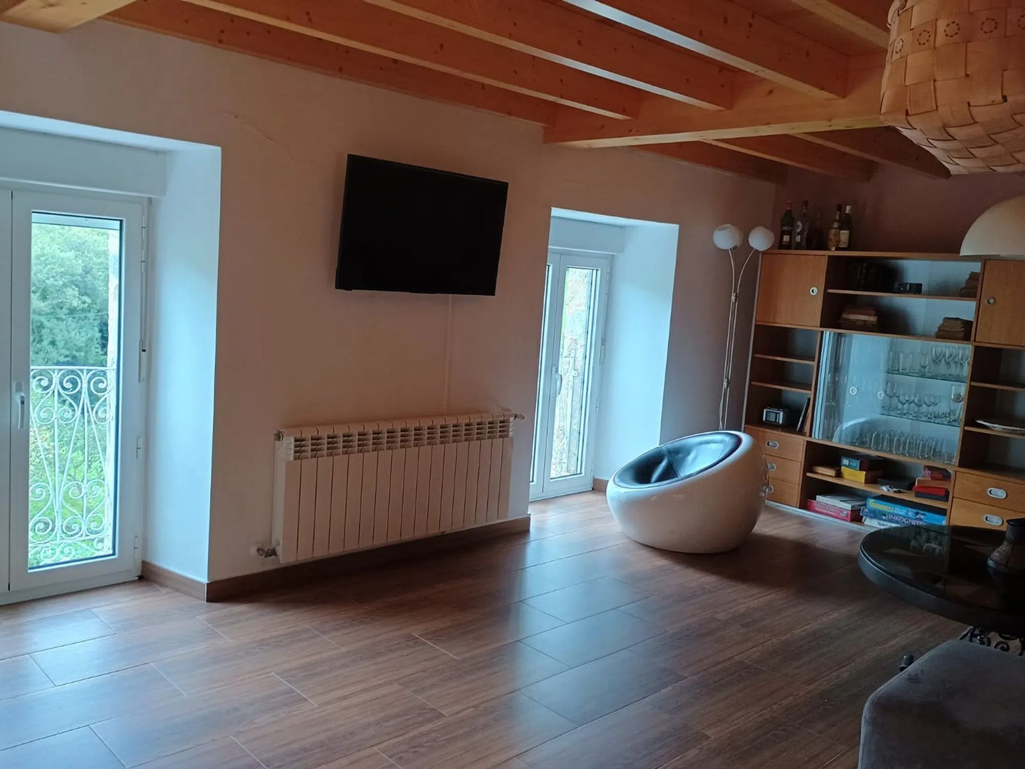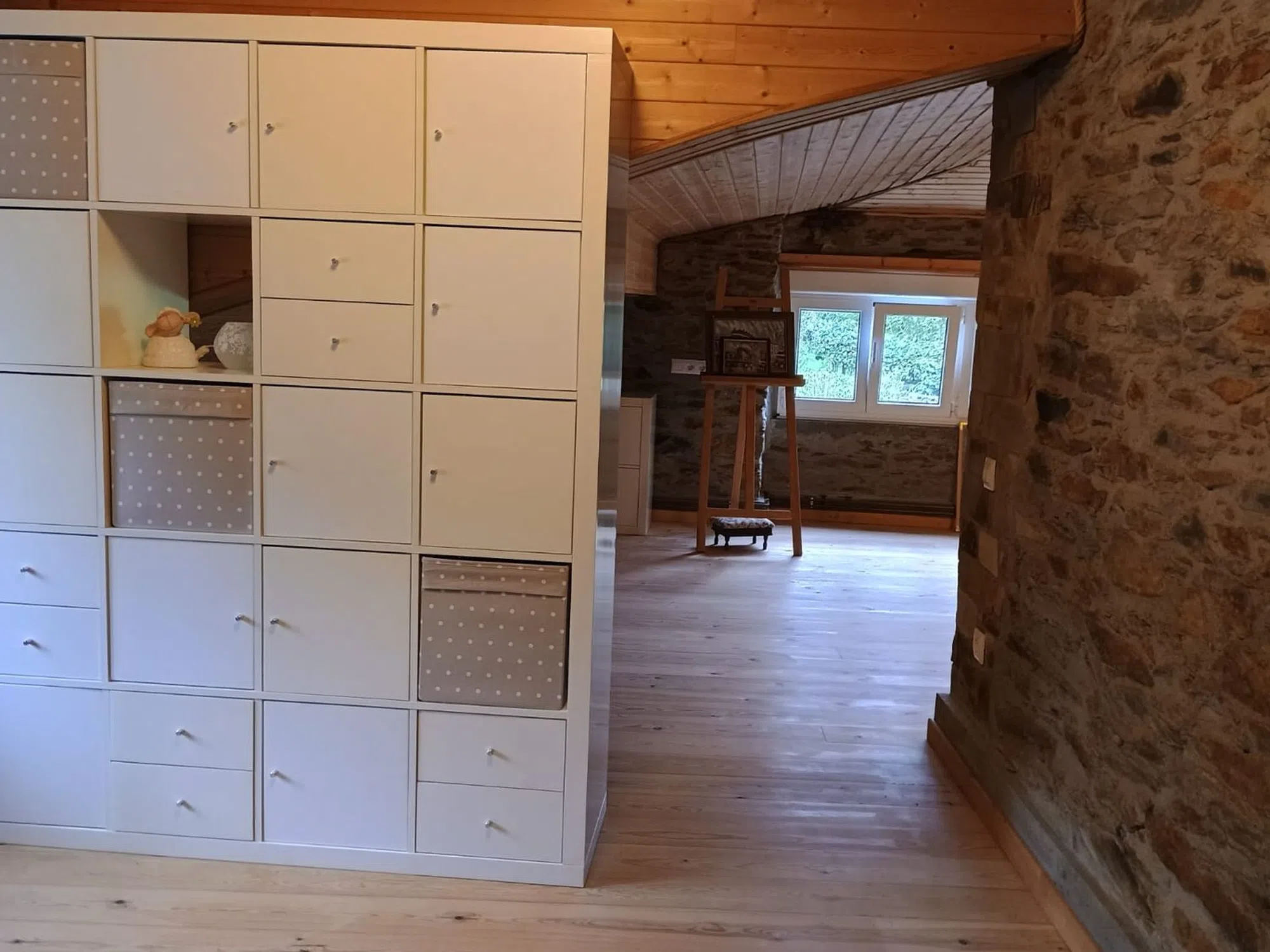 Casa Rural recién reformada con cocina de alta calidad incl. cocina, horno y lavavajillas. Nueva cocina de leña. Gran comedor integrado en la cocina. Sala de estar de planta abierta. En la planta baja hay un amplio cuarto de baño accesible para minusválidos. Un dormitorio independiente. Toda la planta baja está construida sin escalones, sin barreras para usuarios de sillas de ruedas. Planta superior La planta superior cuenta con dos amplios dormitorios. Ambas zonas están separadas por un antiguo muro de piedra de cantera. El tejado es abierto, con vigas a la vista. Todo el tejado está aislado. Sótano Un gran taller o sala de fiestas con cuarto de baño (ducha y WC). Calefacción central con quemador polivalente y caldera de 300 litros. Preparación de agua caliente eléctrica o por leña/carbón. Trastero independiente con conexión para lavadora, secadora, frigorífico, etc. Patio Patio parcialmente cubierto con acceso al sótano y escaleras a las plantas superiores. Terrazas Frente a la casa se encuentra la terraza panorámica de 3 niveles. Parcialmente pavimentada con losas de piedra nuevas y enmarcada con barandillas metálicas. Conexión de agua privada en el nivel superior. La zona superior está dividida con su propio muro de piedra de cantera (pantalla de privacidad) - salón chill-out. Amplio aparcamiento con su propia toma de agua en el acceso a las terrazas. Amplio prado con jóvenes árboles frutales sobre las terrazas. Ubicación La propiedad está situada en el tranquilo occidente de Asturias, en el pueblo de Ponticiella (Villayón). Las ciudades más cercanas son Boal (19 km) y Navia (32 km) en la costa con sus hermosas playas.