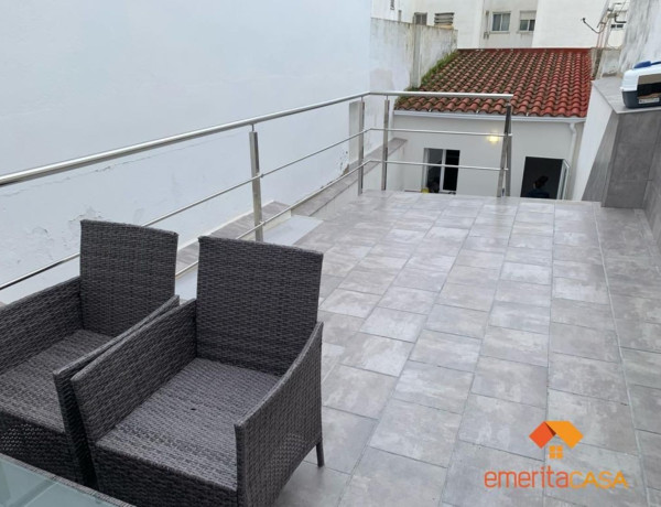 Casa en Centro, con 150 m² construidos, 118 m² metros de parcela, 2 dormitorios, 1 baños, reformado, interior, 1 terraza(s), 12 m² de terraza, cocina con electrodomésticos, trastero, patio, amueblado, aire acondicionado split, energía agua eléctrica, alta suministros realizada, suelo de porcelánico. Emeritacasa, pone en venta casa completamente reformada en el centro de Mérida.Vivienda completamente reformada con materiales de primera calidad, amueblada y lista para entrar a vivir!La vivienda está distribuida en:Planta baja:Hall-distribuidor donde se dispone de dos dormitorios, una sala de estar, una cocina completamente equipada y un baño con plato de ducha y ventana.A continuación y desde esta misma sala de estar, tenemos salida directa a un fantástico patio completamente listo para disfrutar en familia y amigos y que a su vez contempla una pequeña alacena o trastero y otras dos estancias donde se podrían realizar multitud de opciones... Despacho profesional, un enorme trastero, sala de juegos para los peques de la casa, un gym para mantenerse en forma, otra habitación etc.. . Planta segunda:Dispone de una espectacular estancia completamente diáfana con mucha luz, actualmente como enorme salon y cuenta con chimenea de pellet y con acceso a una magnífica terraza abierta de unos 12m2 aprox. Decir que a esta dependencia, tendríamos acceso a la misma, desde la sala de estar mediante una escalera escamoteable o mediante escaleras por el patio de la vivienda.La carpintería de madera es de color blanco, carpinteria metalica en pvc oscilobatiente y doble cristal climalit, suelos porcelánicos en toda la vivienda. Dispone de un split de frio/calor en sala de estar y el agua caliente sanitaria en calentada por medio de un termo eléctrico.Si es la vivienda que estabas buscando, reformada, equipada y lista para entrar a vivir, tenemos lo que quieres.¡Preguntanos sin compromiso!Emeritacasa, su inmobiliaria en Mérida.