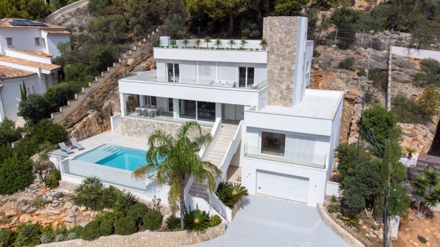 Impresionante villa de tres plantas en la glamurosa zona del Port d’Andratx, suroeste de Mallorca, con cuatro habitaciones y cuatro baños.La vivienda cuenta con 481m2 de superficie habitable distribuidos en 3 plantas. La planta baja, de 157m2 se divide en un hall, aseo, una cocina digna de un chef equipada con electrodomésticos Siemens, una gran isla central con barra y vistas abiertas al comedor y a la terraza, lavadero, un dormitorio y un baño. Y tiene además un porche y dos amplias terrazas. La vivienda tiene una paleta interior que llama a la tranquilidad con su madera clara, los tonos blancos y los acabados de piedra y cristal.La primera planta tiene una superficie de 118m2 y consta de distribuidor, tres dormitorios y tres baños. La suite principal se encuentra en un ala privada y tiene un vestidor, baño de hidromasaje con bañera y ducha separada, detalles en piedra natural y madera, y un tocador doble. Caben destacar también sus vistas al océano.El sótano, de 91m2, consta de garaje para dos vehículos y dos trasteros. La casa también dispone de ascensor y portón eléctrico.El exterior es igual de impresionante que el interior con una terraza de varios niveles con cubierta y la piscina infinita y el solárium. Dispone también de cocina y comedor exteriores, varias zonas de estar, vistas al mar, jacuzzi y paisajismo de bajo mantenimiento con plantas autóctonasLa posición de esta villa es privilegiada, se encuentra en el Puerto de Andratx, una de las zonas más exclusivas de la isla, entre Calla Llamp y Cala Marmassen. Está a tan solo unos minutos del club de playa, del puerto, tiendas, campo de golf y restaurantes y a unos minutos en coche de la ciudad de Palma y el aeropuerto.La vivienda está sujeta a subasta y la puja empieza en 1.750. 000.