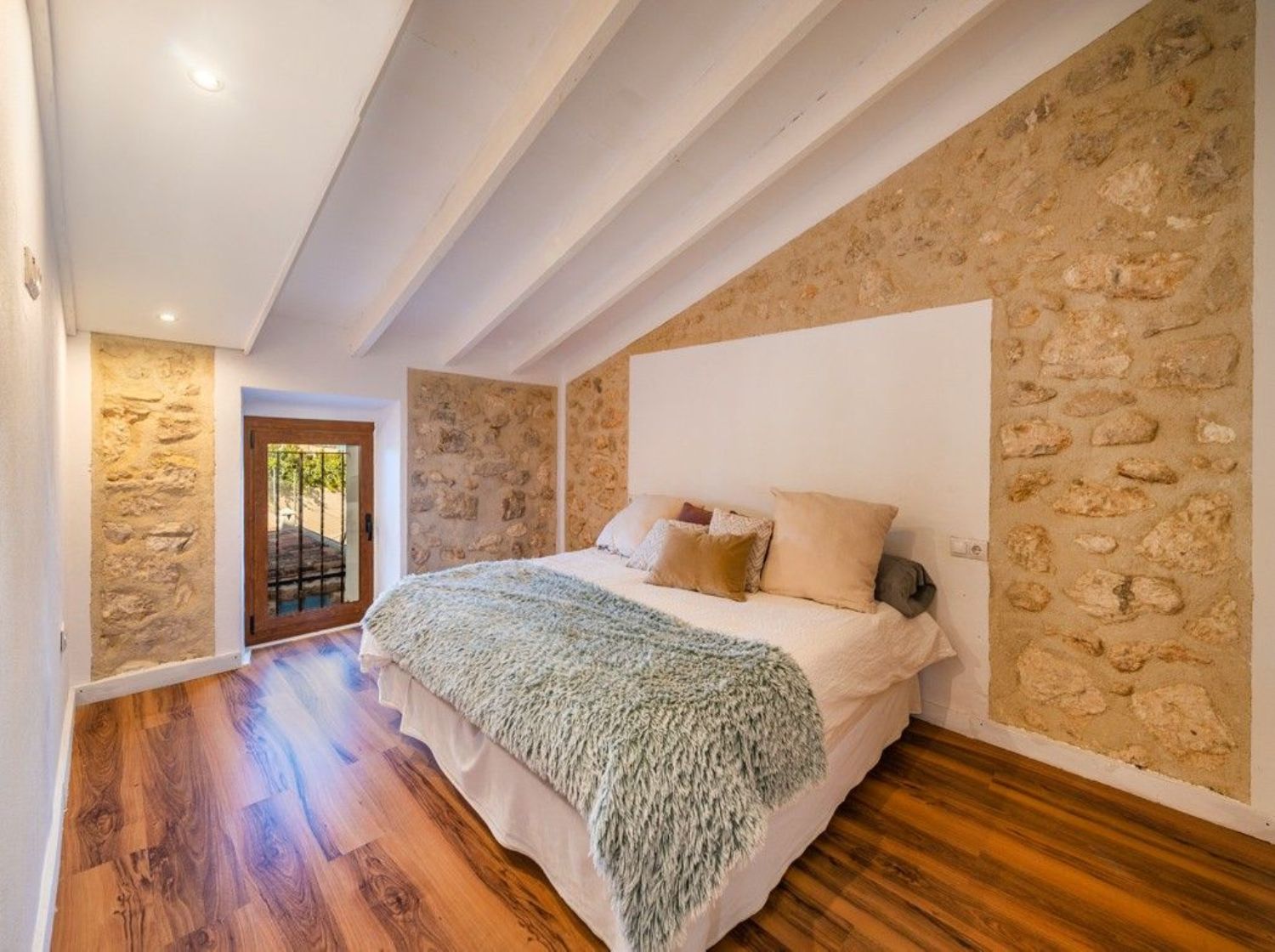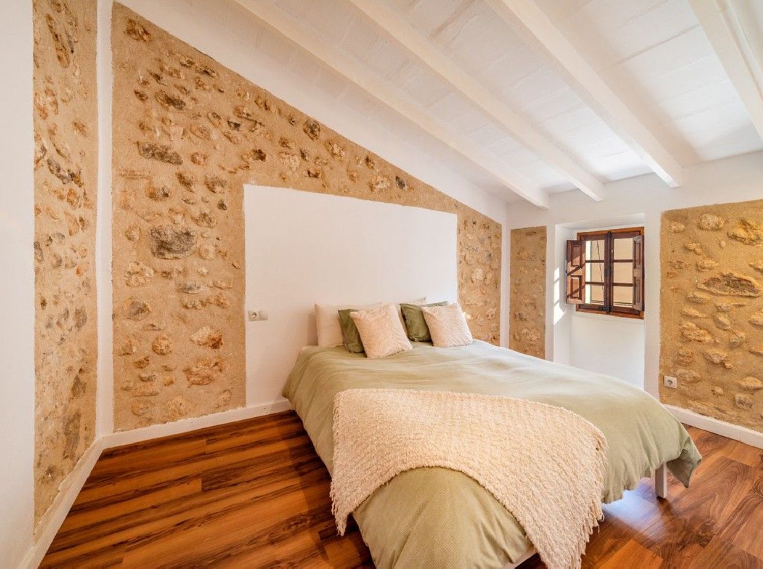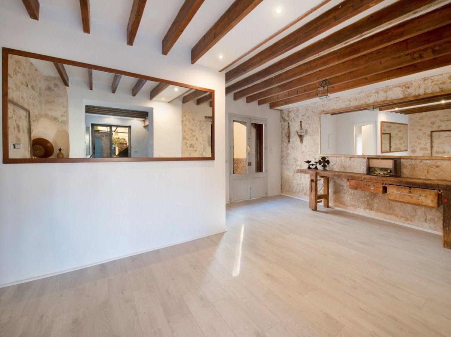 Encantadora casa adosada con precioso espacio exteriorEsta encantadora casa adosada acaba de someterse a una completa renovación y ahora brilla con todo su esplendor, lista para disfrutar de un apacible estilo de vida mediterráneo. Ubicada en una calle tranquila en las afueras del tradicional pueblo de Campanet, ofrece no solo un acceso fácil a la autopista, sino que también las playas se encuentran a solo un breve trayecto en coche. La propiedad está equipada con aire acondicionado y destaca por su atención al detalle con sus vigas de madera expuestas y la piedra mallorquina. Al entrar en este hogar, se presenta todo un espacio abierto, solo dividido por arcos antiguos, que se compone de la sala de estar, la cocina y una zona de comedor que conduce directamente al encantador y amplio patio, jardín y piscina. En esta planta baja además se encuentra un aseo de invitados con ducha. La primera planta alberga tres dormitorios y un baño familiar, todos con techos altos y suelos de parquet. El espacio exterior podría ser un verdadero Edén, de bajo y fácil mantenimiento, con una amplia terraza al sol y una piscina de inmersión de sal de 6 x 3 metros, ideal para relajarse en verano. Esta propiedad es realmente especial y perfecta para disfrutar de momentos de calidad con familiares y amigos. Ya sea que estés buscando un nuevo hogar bajo el sol o una inversión segura, esta casa de pueblo es definitivamente digna de consideración. La propiedad incluye estacionamiento doble con acceso desde la calle trasera y conexión directa con el área de la piscina y el jardín. Un área de lavandería independiente y espacio para una cocina de verano completan la oferta. Se recomienda encarecidamente programar una visita para experimentar personalmente esta joya.Campanet es un hermoso pueblo situado en el interior pero muy bien conectado a la red de carreteras, a sólo 15 minutos de la playa, 30 minutos de Palma de Mallorca y del aeropuerto. Es un pueblo maravilloso y auténtico, que fue habitado incluso antes de la ocupación romana. Además, permanece mayoritariamente fuera de la red turística. Ahora es un pueblo residencial con alrededor de 2600 habitantes, un lugar único para experimentar la tradición y el auténtico estilo de vida mediterráneo. La nueva autopista es de fácil acceso y un servicio de autobús circula varias veces al día hasta la siguiente estación de tren en Inca. Campanet cubre todas las necesidades básicas, incluyendo un pequeño supermercado y un mercado semanal todos los martes, con productos frescos y locales. Situado entre tierra plana y montañas, es simplemente un pueblo encantador. Hay mucho que ver paseando por las estrechas calles que conducen a la gran plaza principal "Plaça Major" con su imponente iglesia barroca originada en el siglo XVIII y muchos restaurantes y bares. Campanet alberga unas cuevas impresionantes que tienen muchas formaciones rocosas naturales hermosas y lagos subterráneos. A las afueras del pueblo se encuentra la capilla de "Sant Miquel" del siglo XIII, una de las más antiguas de la isla, y en los bosques es donde las espectaculares fuentes naturales de "Ufanes" cobran vida después de las fuertes lluvias. Los precios de las propiedades aquí son relativamente asequibles, lo que significa que usted obtiene más por su dinero y las propiedades son igual de encantadoras. Encontrará bonitas casas de pueblo y casas de campo en venta y en alquiler.