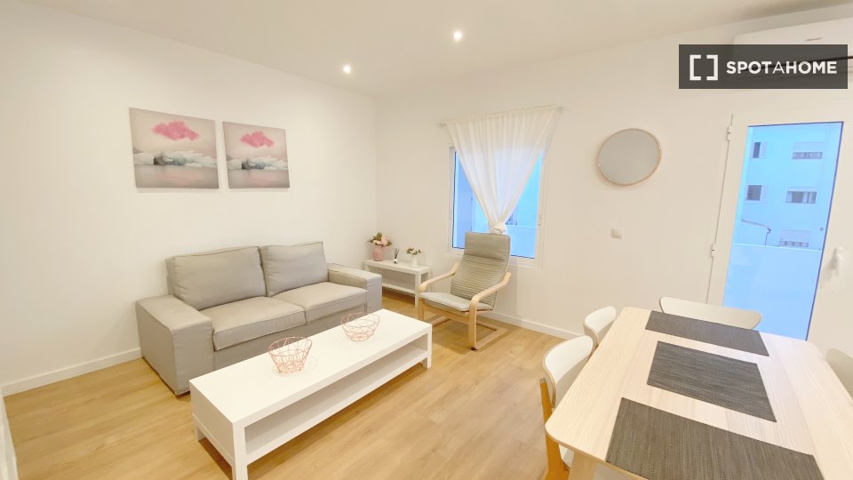 Diese 3-Zimmer-Wohnung in Bons Aires, Palma, bietet einen komfortablen Wohnraum mit Klimaanlage, Elektroheizung und ist möbliert. Die Wohnung verfügt über einen Balkon, eine voll ausgestattete Küche mit Geschirrspüler und Backofen sowie eine gemeinschaftlich genutzte Waschküche. Rauchen und Haustiere sind nicht gestattet. Obwohl diese Immobilie nicht persönlich von Spotahome verifiziert wurde, durchlaufen alle Spotahome-Vermieter ein gründliches Überprüfungsverfahren, um Qualität und Sicherheit für die Mieter zu gewährleisten.