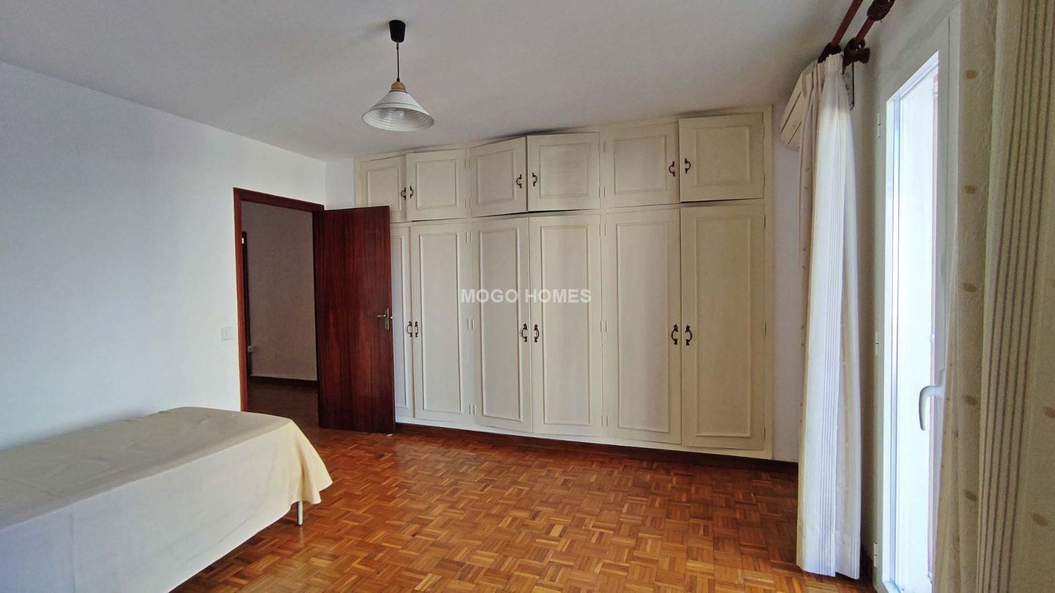 Amplio y luminosos piso de 207m2 junto al Paseo Mallorca. Se distribuye en un gran salón-comedor de dos estancias que se pueden dividir con una puerta corredera y con salida a una terraza de 15m2. Junto al comedor hay una amplia cocina con acceso a una coladuria y un pequeño trastero. El piso dispone de 4 dormitorios dobles, uno individual y otro muy pequeño que puede servir de despacho o trastero.Hay 3 baños recién reformados uno de ellos en suite. Tiene una segunda terraza de unos 12m2 que colinda con dos de los dormitorios dobles.Hay suelos de parquet, caldera de gas para agua caliente sanitaria, aire acondicionado frio/calor en salón comedor y en tres dormitorios.Cerramientos con rotura de puente térmico y doble acristalamiento por toda la casa.Hay disponibilidad de alquilar un parking en Jaime III.Un mes de fianza y un mes de renta + iva de honorarios agencia.Prueba de solvencia económica indispensable.