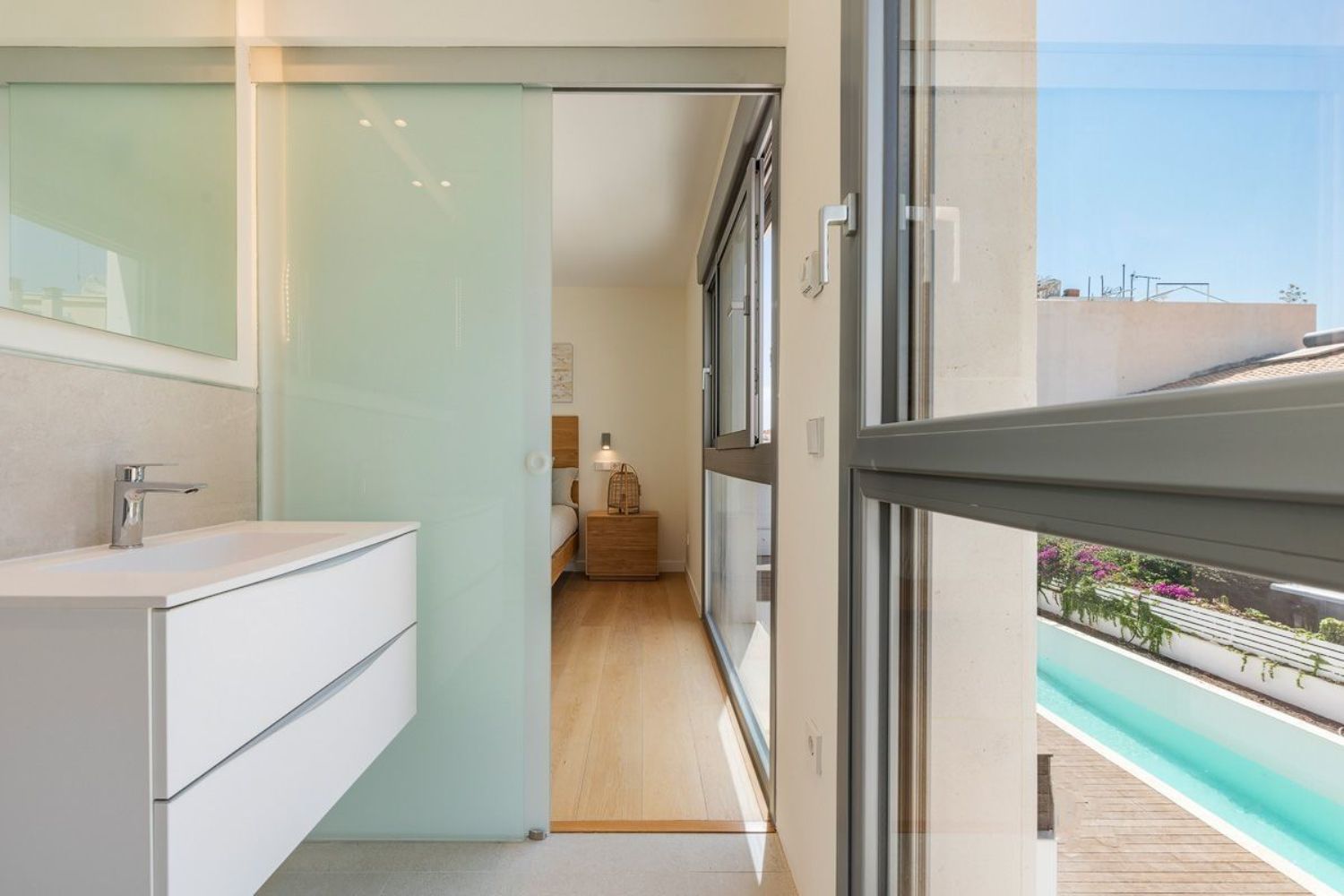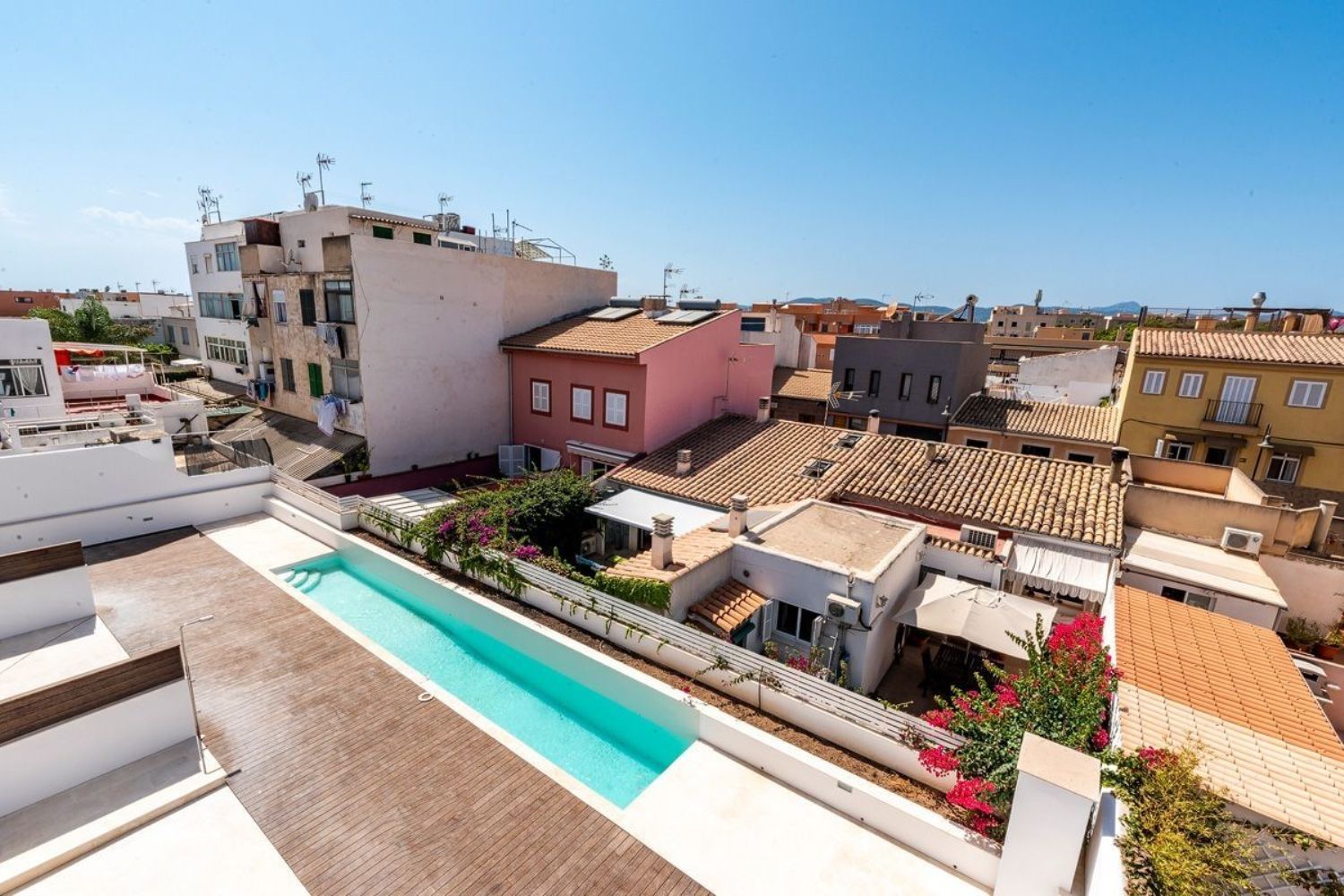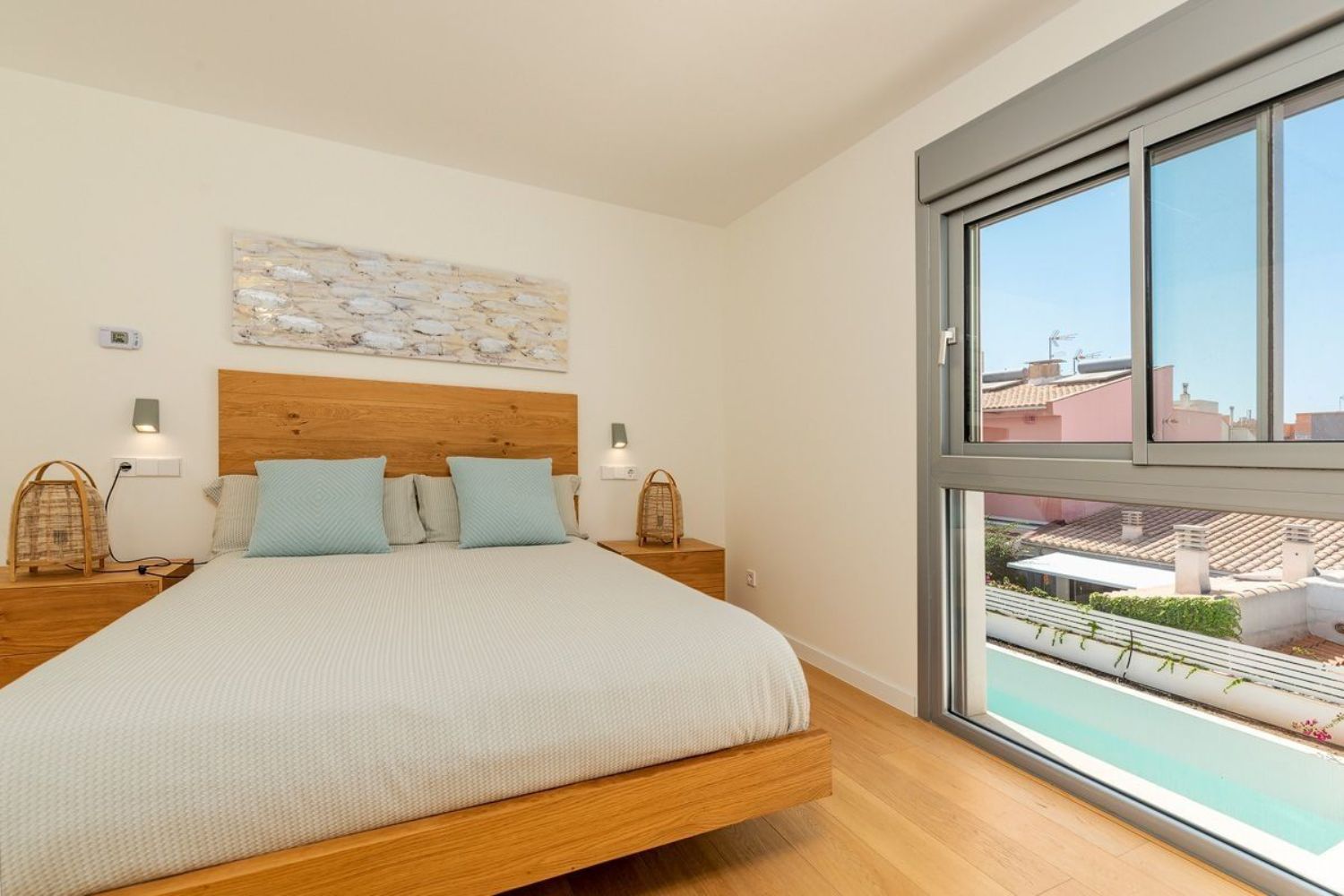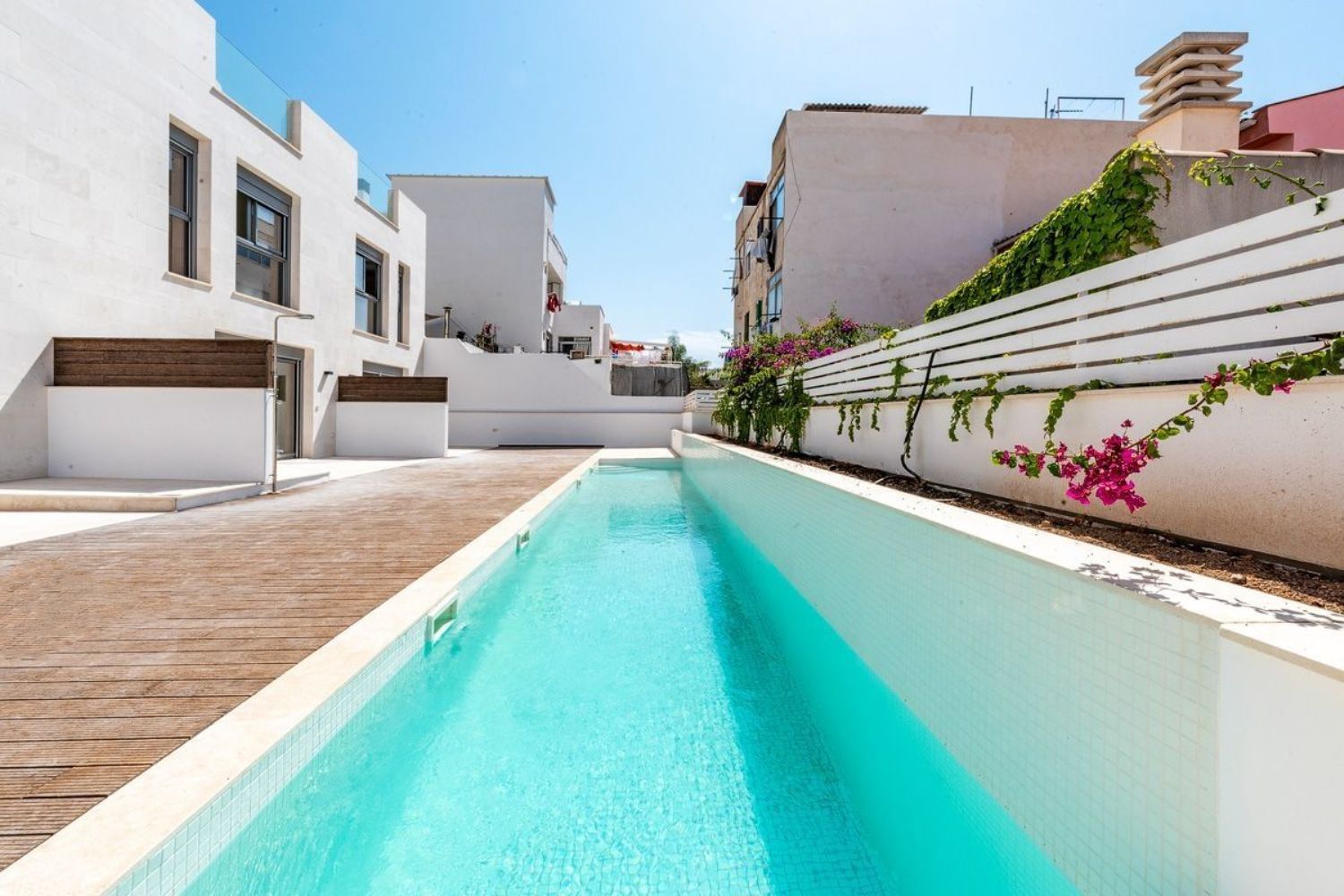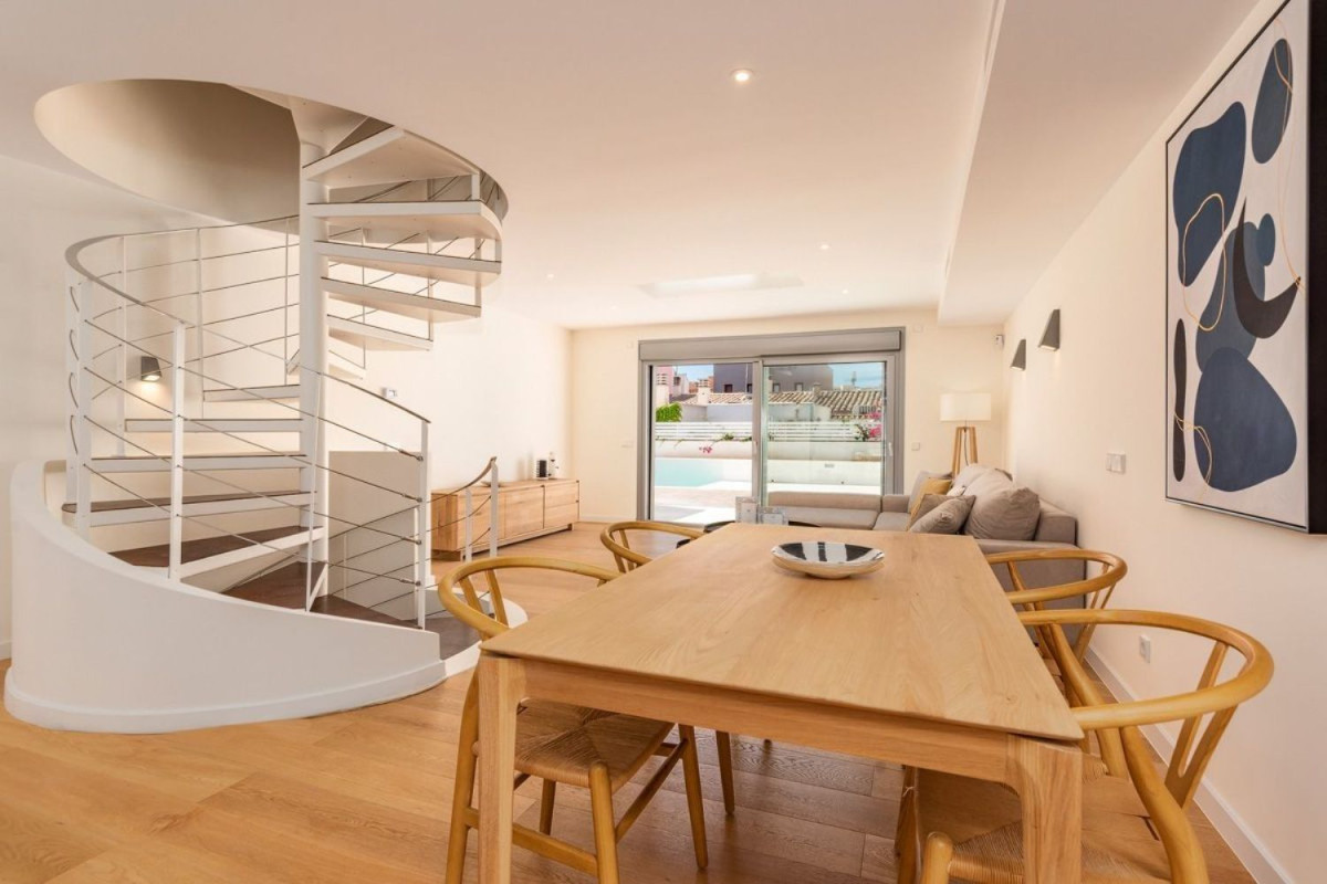 Este moderno adosado de esquina construido en 2021 con piscina comunitaria y 2 plazas de aparcamiento en el garaje se encuentra en el barrio de moda de Portixol / El Molinar, a solo 250 m del paseo marítimo. Este nuevo proyecto de construcción consta de solo 2 adosados de esquina y 2 en medio.La casa con una superficie construida de 231 metros cuadrados se distribuye en 101 metros cuadrados de superficie habitable, 50 metros cuadrados de terraza en la azotea, 47 metros cuadrados de garaje y 33 metros cuadrados de zonas comunitarias.En la planta baja se encuentra el salón-comedor abierto de aproximadamente 39 metros cuadrados con una cocina integrada. Desde aquí se puede acceder al solárium con orientación suroeste y a la piscina comunitaria detrás de este, así como al sótano y a la primera planta.Además del dormitorio principal con baño en suite y vestidor, la primera planta consta de otros 2 dormitorios dobles que comparten un baño.En el sótano hay una coladuría, un baño con ducha y una gran sala multifuncional que fácilmente podría convertirse en un dormitorio adicional o una habitación para sus invitados. Delante del sótano y, por lo tanto, con acceso directo, hay 2 plazas de garaje, una de las cuales ya está equipada con una estación de carga para coches eléctricos. En la zona comunitaria del aparcamiento subterráneo también existe la opción de guardar sus bicicletas de forma segura.Otras características: aire acondicionado frío/calor y calefacción por infrarrojos en todas las habitaciones, baños con baldosas de diseño y de alta calidad y accesorios de Hans Grohe así como armarios empotrados en la zona de noche.