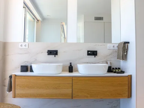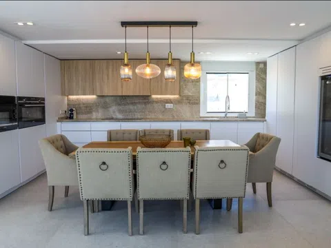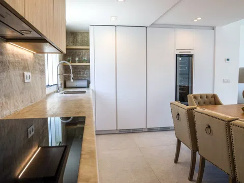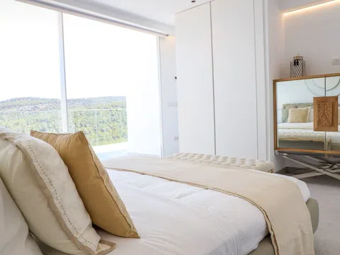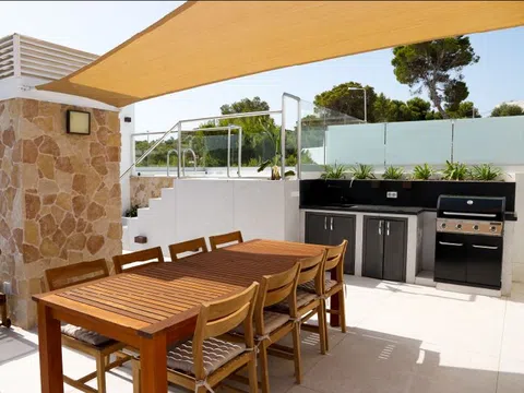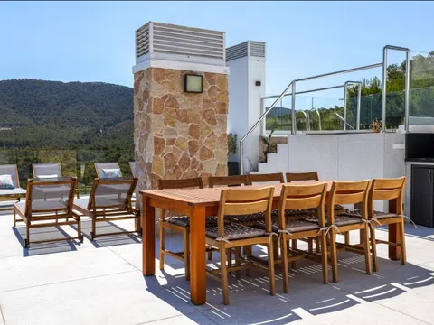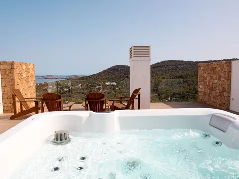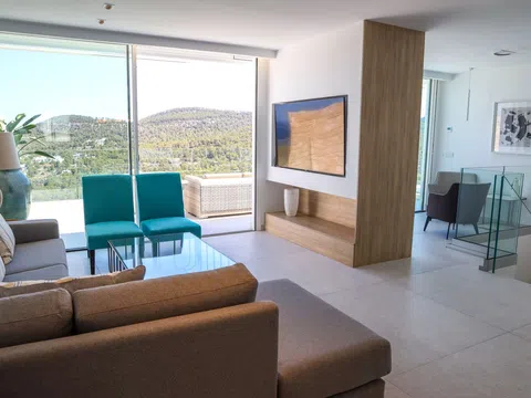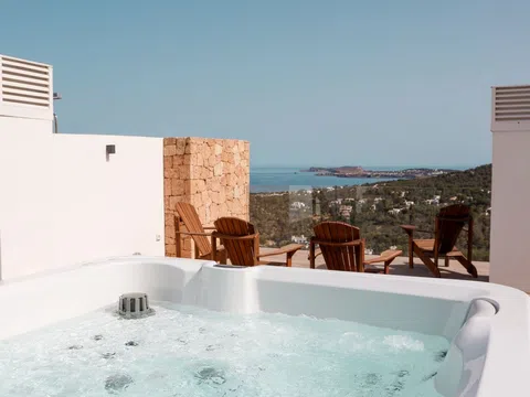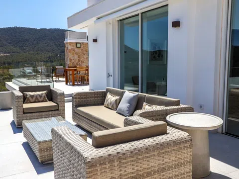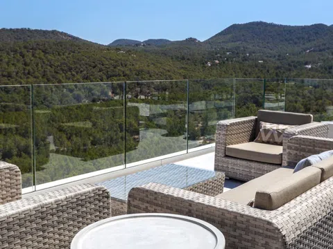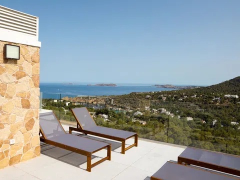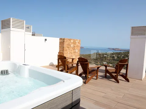 Mit großzügiger Raumaufteilung bietet dieses Penthouse 4 luxuriöse Schlafzimmer und 4 elegante Bäder, die mit viel Liebe zum Detail und Komfort gestaltet sind. Über 200 m² Terrassenfläche erstrecken sich über drei Ebenen und bieten viel Platz für Outdoor-Wohnbereiche und Entertainment. Entspannen Sie neben Ihrem privaten Pool auf der zweiten Etage oder genießen Sie den Jacuzzi auf der Dachterrasse, während Sie den atemberaubenden Blick auf das Mittelmeer genießen. Die Terrasse ist mit einer voll funktionsfähigen Außenküche ausgestattet, inklusive Grill, Spüle und Kühlschrank – perfekt, um das sonnige Klima Ibizas zu genießen.