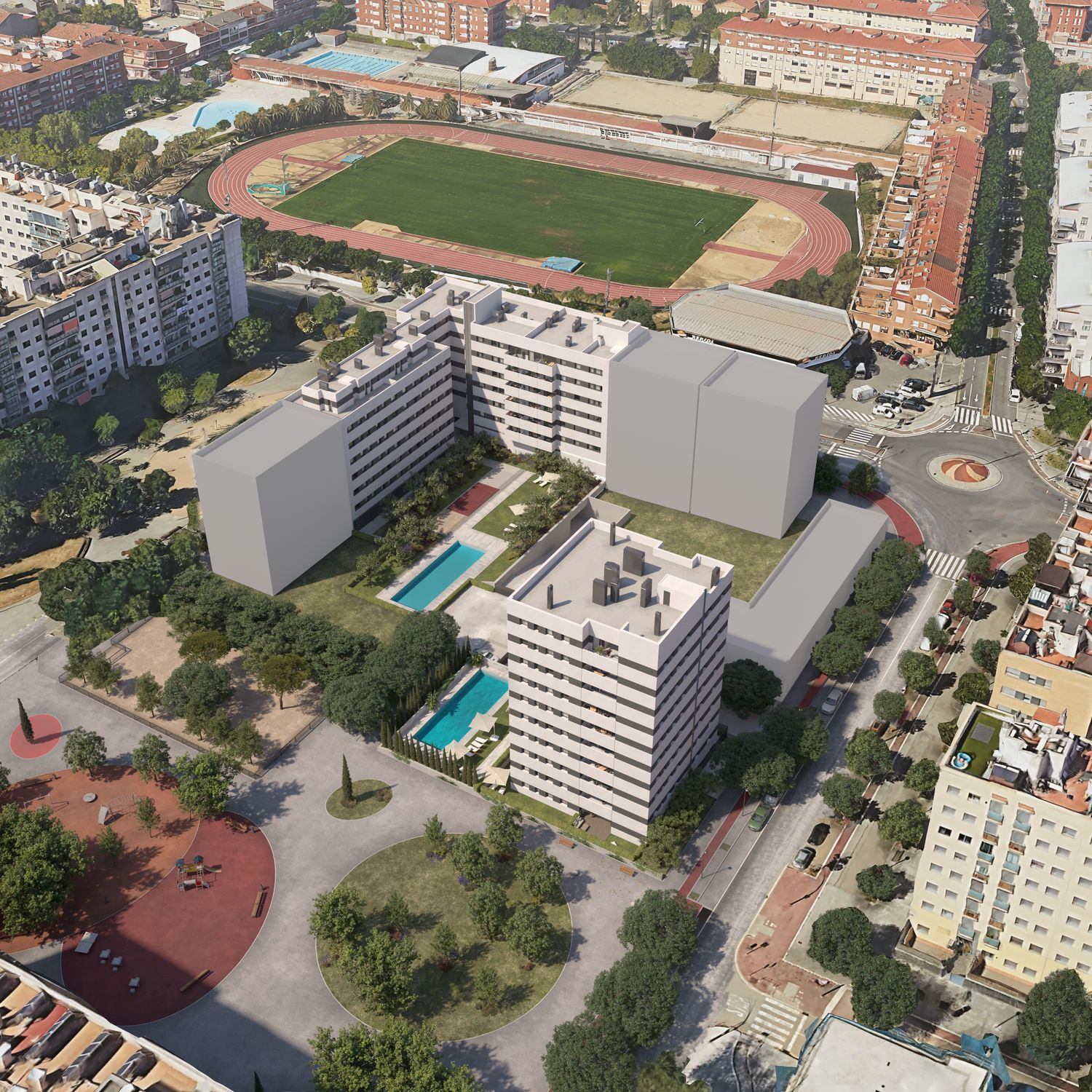 Edifici Barberà es una promoción de 89 viviendas plurifamiliares de 2 y 3 habitaciones. Las viviendas disponen de unas excelentes distribuciones. Dispone en 2 plantas sótano de garajes y trasteros, además el conjunto residencial posee una amplia zona comunitaria con especies arbustivas autóctonas y aromáticas donde poder disfrutar con sus magníficas piscinas. El edificio torre, compuesto por 39 viviendas, permite el aprovechamiento del asoleamiento en todas las viviendas y unas excelentes vistas, así como su composición en nueve plantas crean un conjunto armónico y perfectamente integrado con el entorno. A su vez, dispone de unos interiores modernos con materiales nobles y de 1ª calidad, con buenas distribuciones que permiten una gran calidez en sus estancias. El edificio en L situado en la confluencia entre carretera Barcelona y la rambla Europa, compuesto por 50 viviendas, dispone de 6 plantas y 2 áticos pasantes con vistas a la zona comunitaria y a la rambla Europa. Esta promoción es un referente de calidad medio ambiental y urbano. Su buena ubicación en Barberà del Vallès le sitúa en una zona residencial bien comunicada, con fácil acceso a servicios esenciales y a escasos minutos del centro. Es tu vida, elige dónde vivirla.