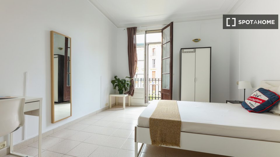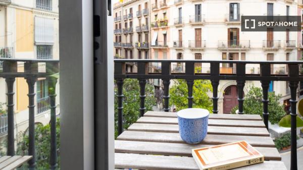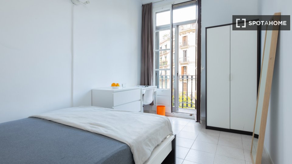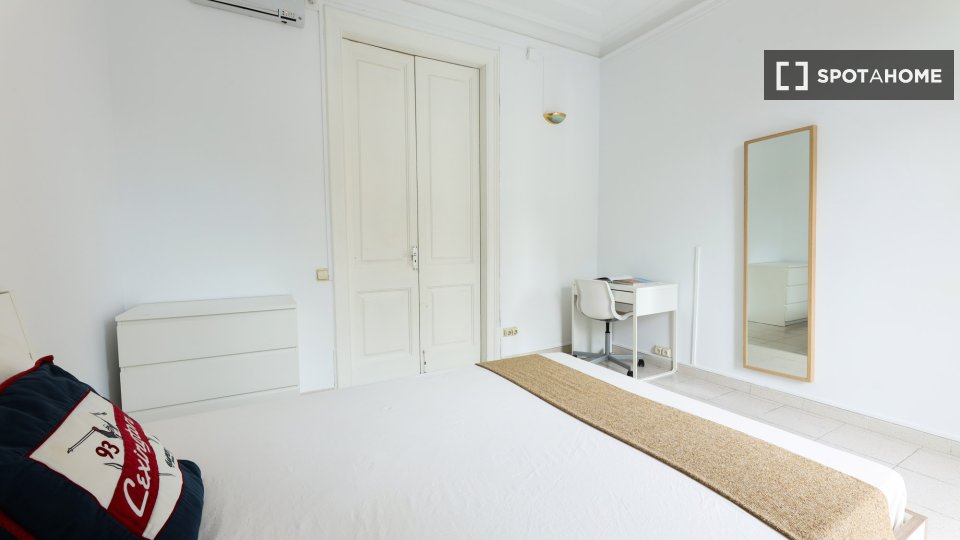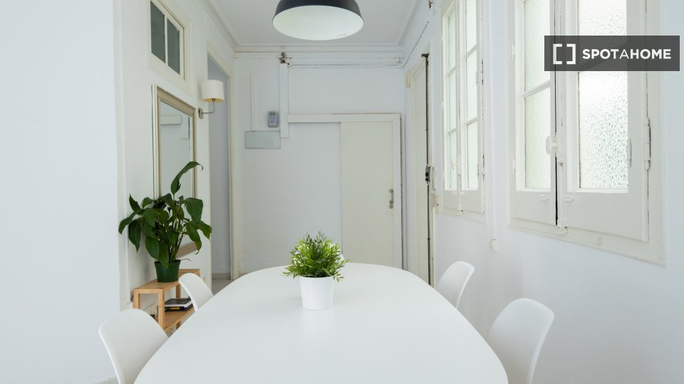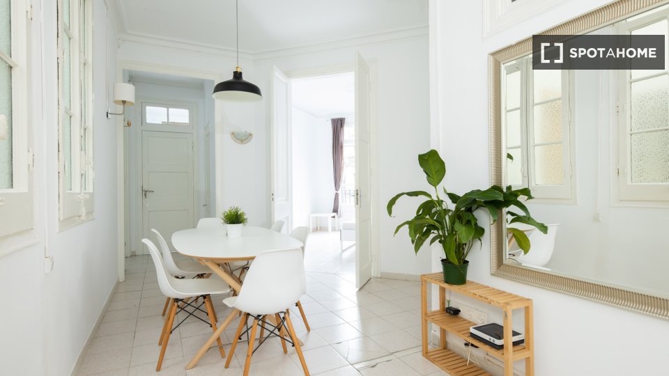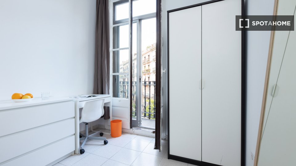 Entdecken Sie ein komfortables Zimmer in einer 6-Zimmer-WG im Kulturviertel El Raval in Barcelona. Die Wohnung bietet eine zentrale Klimaanlage für ein angenehmes Wohnklima und ist komplett möbliert mit einer voll ausgestatteten Küche. Strom, Wasser, Gas und WLAN sind inklusive.