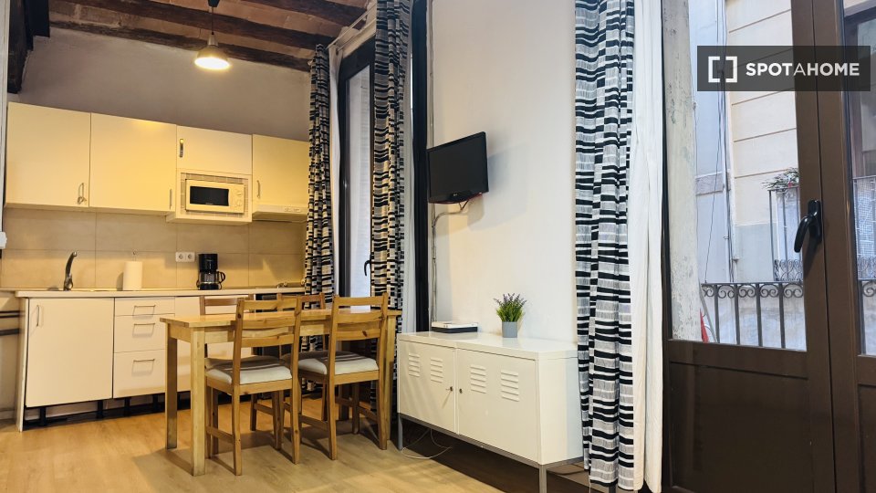 Dieses charmante Studio in Sant Pere Santa Caterina i la Ribera bietet einen gut ausgestatteten Wohnraum mit Möbeln und Klimaanlage. Es ist ideal für Studenten, Berufstätige oder Paare. Das Angebot wurde von Spotahome persönlich geprüft, um Richtigkeit und Qualität zu gewährleisten.
