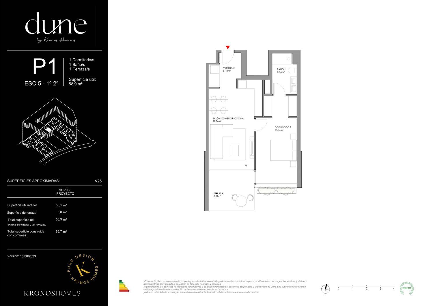 Kronos Homes presenta Dune, un exclusivo proyecto en primera línea de playa en Cubelles diseñado por el prestigioso estudio MiAS Architects. Sus luminosas viviendas de 1 a 4 dormitorios cuentan con una tipología flexible, pudiendo añadir un dormitorio a las de 2 y a las de 3, para convertirlas en 3 y 4 dormitorios respectivamente. Además, todas disponen de privilegiadas vistas al mar y han sido especialmente concebidas para disfrutar del maravilloso entorno marítimo. Un homenaje al estilo de vida mediterráneo que cobra todo el protagonismo en sus espectaculares terrazas y en los jardines privados de las plantas bajas, capaces de integrar el mar como un elemento esencial de cada vivienda.En cuanto a las zonas comunes, los edificios se han dispuesto para optimizar las vistas y crear un residencial ajardinado con un paisajismo sostenible y adaptado a las condiciones locales. Entre su completo equipamiento comunitario, destaca una gran piscina, un gimnasio, una sala polivalente y una zona de juegos infantil. Una oportunidad única para vivir en una ubicación inmejorable, situada entre Tarragona y Barcelona, perfectamente comunicada por carretera y Rodalies y a solo media hora del Aeropuerto del Prat.*La información gráfica es meramente orientativa. Kronos Investment Management Spain, S. L. se reserva el derecho a efectuar modificaciones que estime necesarias por exigencias de orden técnico, comerciales, jurídicas, administrativas o por las necesidades constructivas o de diseño derivadas del desarrollo del proyecto o de las decisiones de la dirección de obra. El equipamiento de la vivienda será el indicado en la memoria de calidades, no siendo objeto de entrega el mobiliario, representado meramente a efectos de funcionalidad de espacios. Los precios de los inmuebles están sujetos a la disponibilidad y no incluyen impuestos indirectos.