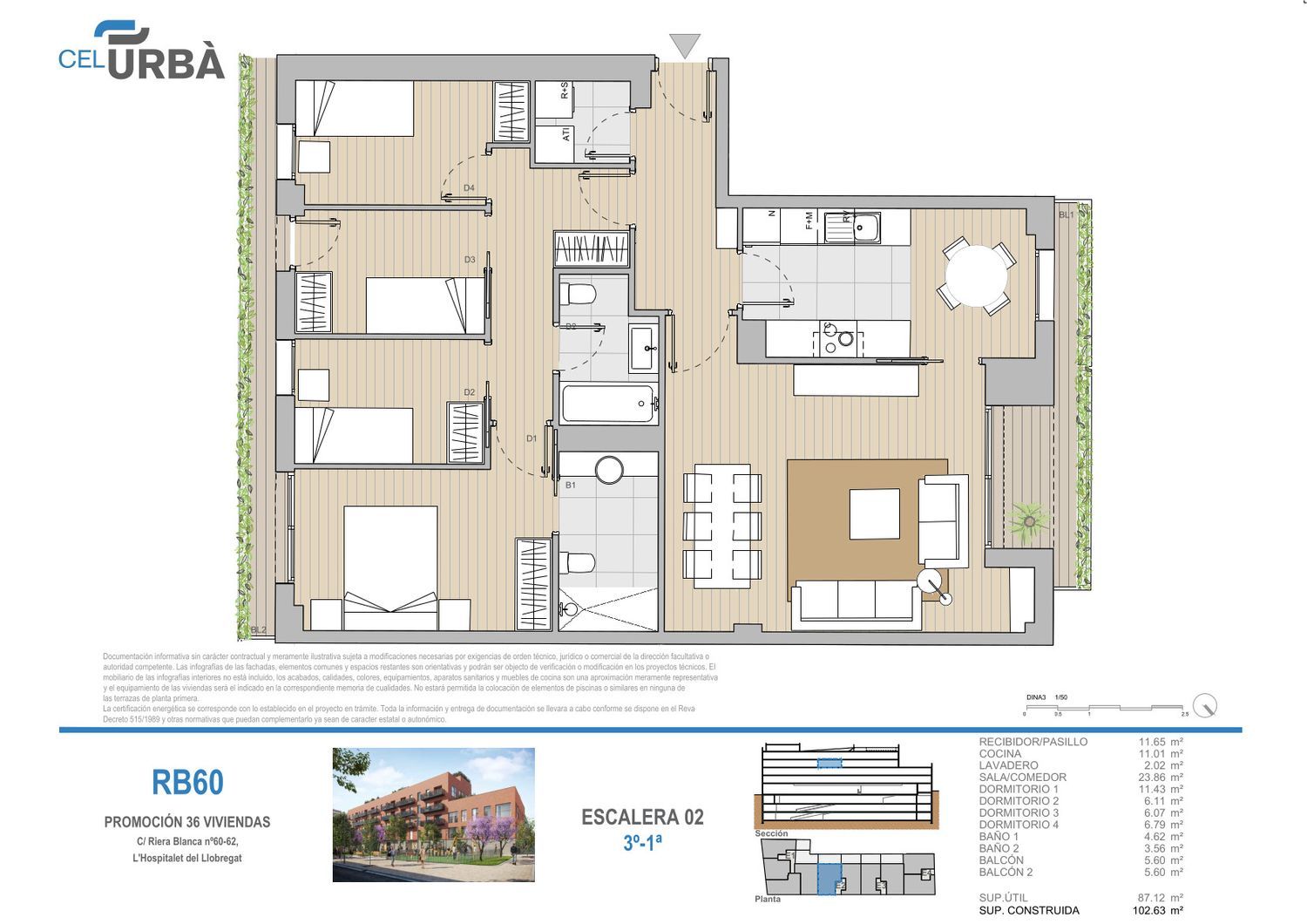 TU FUTURO HOGAR EN UN ENTORNO TRANQUILO Y CERCA DE TODOVIVE EN UN OASIS EN RIERA BLANCACornex Capital te presenta este fantástico edificio de obra nueva de 4 plantas de altura, distribuido en 36 viviendas que disfrutan de unos acabados de máxima calidad, y un diseño moderno, para poder disfrutar de todo el espacio y la luz natural.Te ofrecemos pisos de 3 y 4 dormitorios según tus necesidades.En la cubierta del edificio encontramos una zona comunitaria con piscina y solárium para que puedas disfrutar sin moverte de casa.Todos los pisos cuentan con el atractivo de disponer de espacios exteriores, ya sea con terraza y/o balcón o balcones. Su cuidada distribución hace que todas las habitaciones tengan luz natural.Dispone de dos plantas subterráneas con plazas de parking y trasteros, no incluidos en el precio de las viviendas, que se pueden adquirir de forma opcional.Estrena piso en una ubicación inmejorable, cerca de todo lo que puedas necesitar, junto a la Avenida Madrid, Travessera de Les Corts, Carlos III, calle Arizala, Carretera de Collblanc, Riera Blanca. A muy pocos pasos del Camp Nou y de la zona universitaria, donde también están situados hospitales de gran prestigio como La Maternidad y la Dexeus. A 5 minutos del Carrer de Sants donde encontrarás todo tipo de comercios. Excelentes comunicaciones con el transporte (metro, bus, tranvía).Previsión entrega de llaves finales en 2024.Visita nuestro showroom en nuestra oficina de ventas situada en c/Riera Blanca 88.