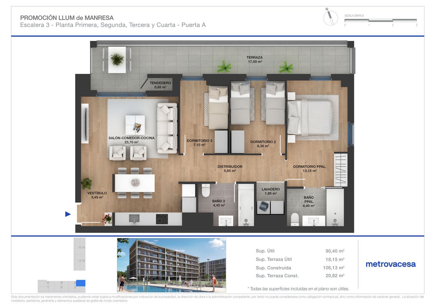 ¡Inicio de construcción!Llum de Manresa, obra nueva en Manresa. Llum de Manresa es el segundo proyecto de Metrovacesa en la ciudad. La promoción está formada por 74 unidades de 2 a 4 dormitorios desde 79m2, todas ellas con amplias terrazas y algunas con espectaculares vistas a Montserrat. Disponibles plazas de parking y trasteros.Su diseño arquitectónico y elegante, integra dos edificios lineales con diferentes orientaciones y vistas. Destacan los jardines y la piscina comunitaria, así como el amplio espacio de sus garajes.Su orientación, vistas panorámicas a Montserrat y a la "Torre d'en Vinyes", magnífico edificio protegido como bien de interés local y sus magníficas zonas comunes dentro del residencial, unido a la eficiencia del consumo energético de los materiales seleccionados para las viviendas, hacen de la promoción un ejemplo de sostenibilidad y diseño.Viviendas con calefacción de gas con radiadores y climatización completa de aire acondicionado.Esta promoción se encuentra ubicada al norte de Manresa, Carrer Concòrdia. Integrada en el parque de "Torre d'en Vinyes", junto a la universidad y cerca de del Parc de l'Agulla. Muy bien comunicada y próxima a todo tipo de servicios (educación, transportes, etc).Es tu vida. Escoge dónde vivirla.