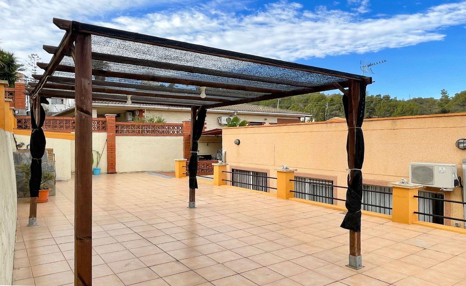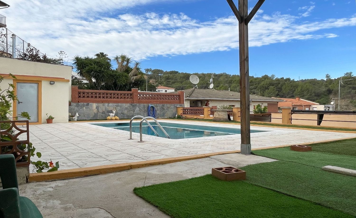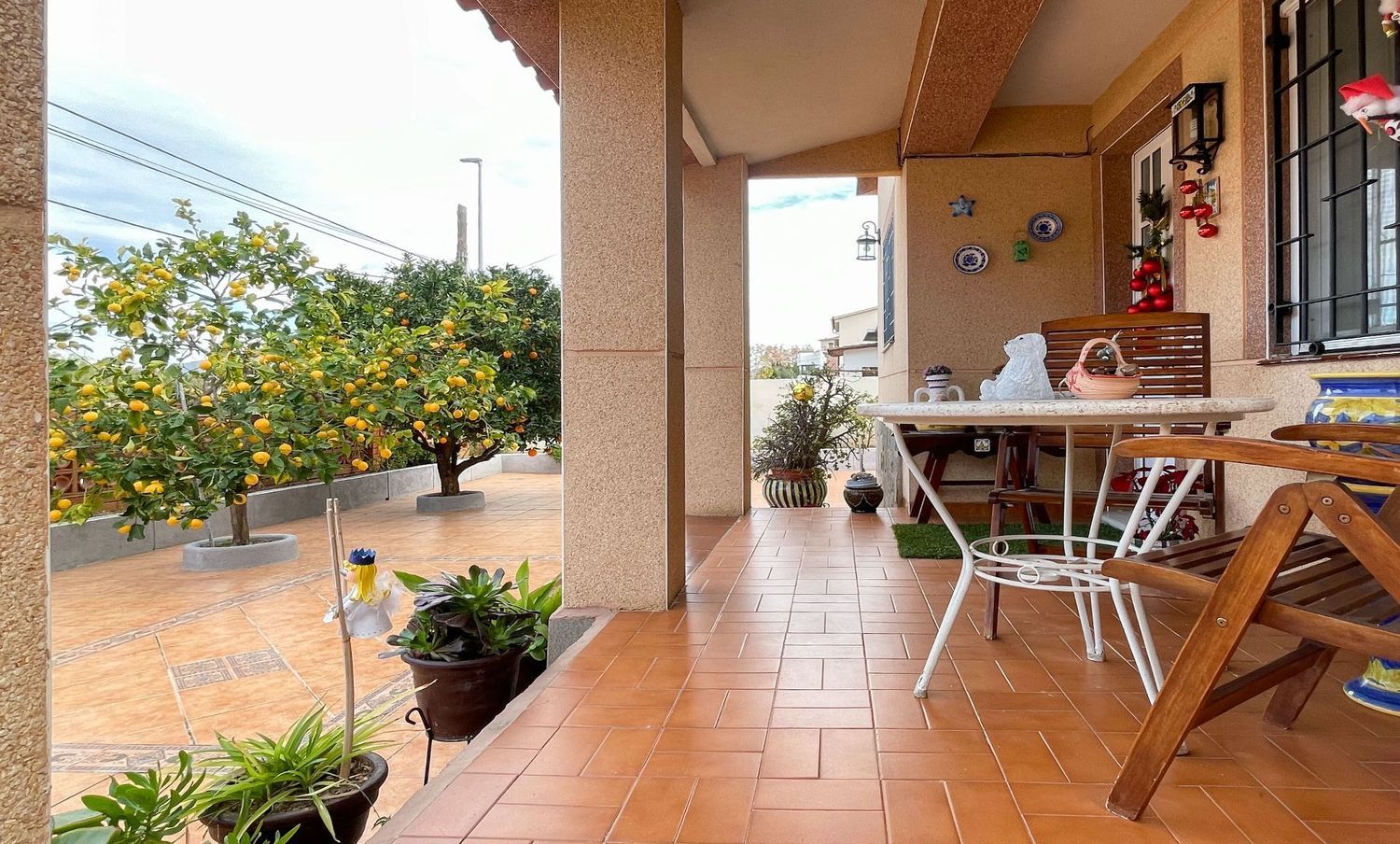 Urbanización del Parque de Marianao, cerca de Accura. Casa a 4 vientos. 132 m2 construidos en una planta (según catastro) distribuidos en: cocina independiente de 12 m2, reformada, salón-estar independiente de 23 m2 y baño completo con bañera. En la siguiente semiplanta, se encuentran la zona de noche, son 3 habitaciones (2 dobles + 1 juvenil) y aseo con ducha. La vivienda es totalmente exterior y soleada, tiene vistas y un entorno de zonas verdesVentanas de aluminio climalit, puertas de roble, suelo de gres. Calefacción con radiadores de gas y aire acondicionado.El total del solar cuenta con una superficie de 548 m2 en 3 bancales donde rodea a la vivienda con la zona de barbacoa-terraza y la zona de la piscina, que cuenta con su baño. Además, tiene un trastero con uso para garaje para un coche y un cuarto trastero-lavadero- despensaLa casa está en perfecto estado de conservación y cuenta con una excelente ubicación cerca de parada del Bus, y próximo a la Ronda. Cerca de colegios (Llor, Sant Josep, Marianao), gimnasio.. .Excelente vivienda para familias [IW].