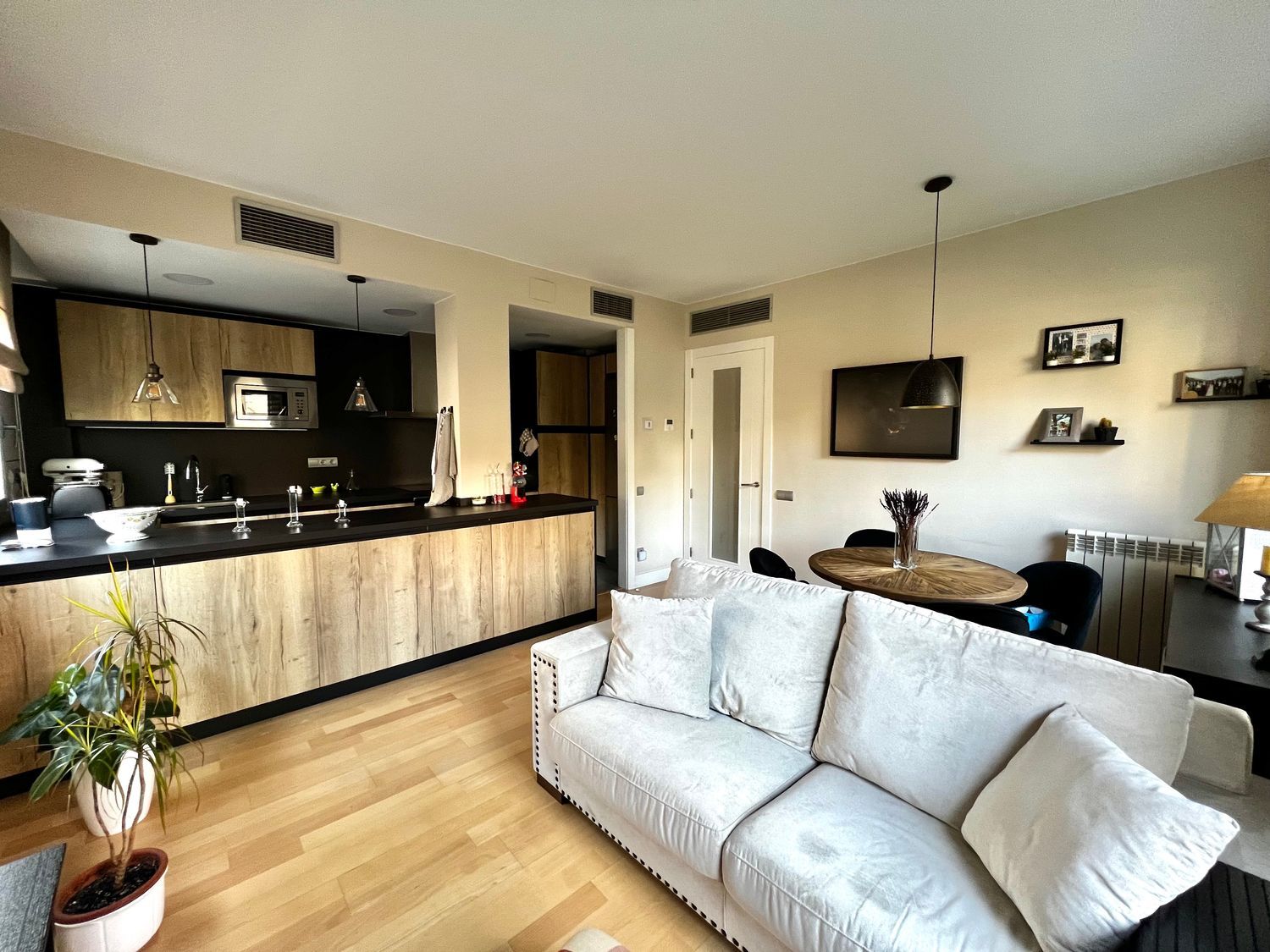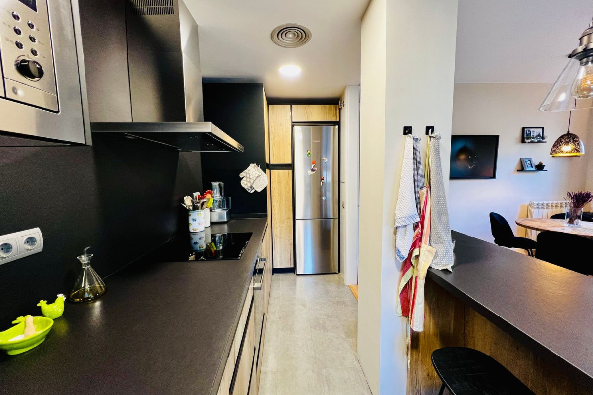 Espectacular piso recién renovado en Can Matas, a menos de 500m del Centro Comercial y de la estación de Mirasol. El piso es totalmente exterior con amplios ventanales, de suelo a techo, en todas las estancias. Dispone de un salón-comedor con cocina abierta de diseño, con electrodomésticos incluidos de alta gama: lavavajillas, placa de inducción, campana extractora de gran potencia, horno, lavadora, secadora y nevera combi. Los suelos son de parquet de madera natural, las puertas son macizas y lacadas en blanco, la calefacción por gas natural y aire acondicionado por conductos con bomba de calor.Las dos habitaciones son dobles, una de ellas en suite con bañera de hidromasaje. Todas las estancias disponen de conexión Ethernet.La puerta de entrada es blindada, con cerradura domótica y bombín de doble embrague para ofrecer mayor seguridad.Amplia zona comunitaria, con piscina y parque infantil y piscina de adultos. La comunidad dispone de conserje. Elegante entrada a la finca sin barreras arquitectónicas.Escuelas y centros deportivos muy próximos.De particular a particular, abstenerse agencias inmobiliarias.