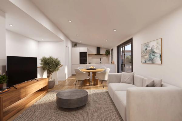 Tu nuevo hogar en Terrassa Vivir como siempre soñaste Residencial Soler i Diffent, 7 – Terrassa 17 viviendas exclusivas con piscina, zonas comunes, parking y trasteros FECHA DE ENTREGA ESTIMADA · SEGUNDO TRIMESTRE 2027 Un horizonte cercano para estrenar luz, calma y un nuevo hogar. Arquitectura que inspira. Hogares que emocionan. Hay lugares que no solo se habitan, se viven. Residencial Soler i Diffent nace con una idea clara: crear hogares donde la luz, el confort y el diseño se unan para ofrecer una vida más serena, más equilibrada, más tuya. Un conjunto íntimo de 17 viviendas en el corazón de Terrassa, diseñadas para quienes buscan algo especial: belleza funcional, espacios amplios y una sensación de hogar que va más allá de las paredes. Los bajos —auténticos hogares que parecen casas— son dúplex invertidos muy bien pensados, con acceso directo desde el salón a terrazas que se convierten en jardines privados donde vivir hacia fuera. Los pisos de 2 habitaciones ofrecen terrazas amplias y agradables, perfectas para disfrutar de la luz y del aire libre en total privacidad. En el centro del proyecto, la zona comunitaria con piscina y jardín crea un oasis urbano donde detener el tiempo: sol, tranquilidad y la calma de un espacio cuidado al detalle. Bienestar exclusivo, solo para pocos Aquí, la exclusividad no se muestra: se siente. En la serenidad al llegar a casa, en la calidad de cada acabado, en la luz que entra cada mañana y en la paz que te envuelve cada tarde. Soler i Diffent es una obra nueva para quienes entienden que el verdadero lujo está en la simplicidad bien diseñada, en la calma y en los detalles. Un lugar donde vivir como siempre soñaste.
