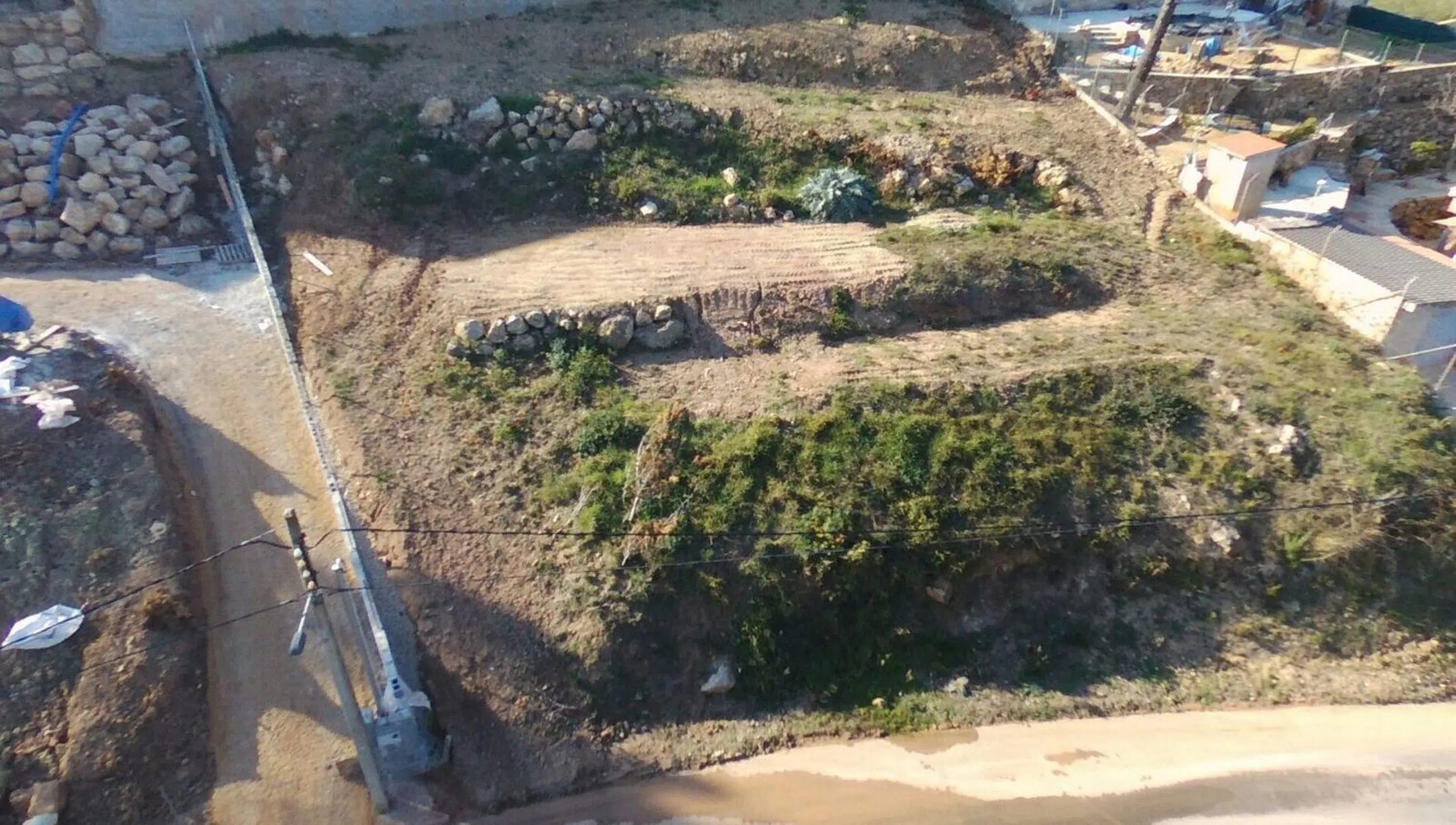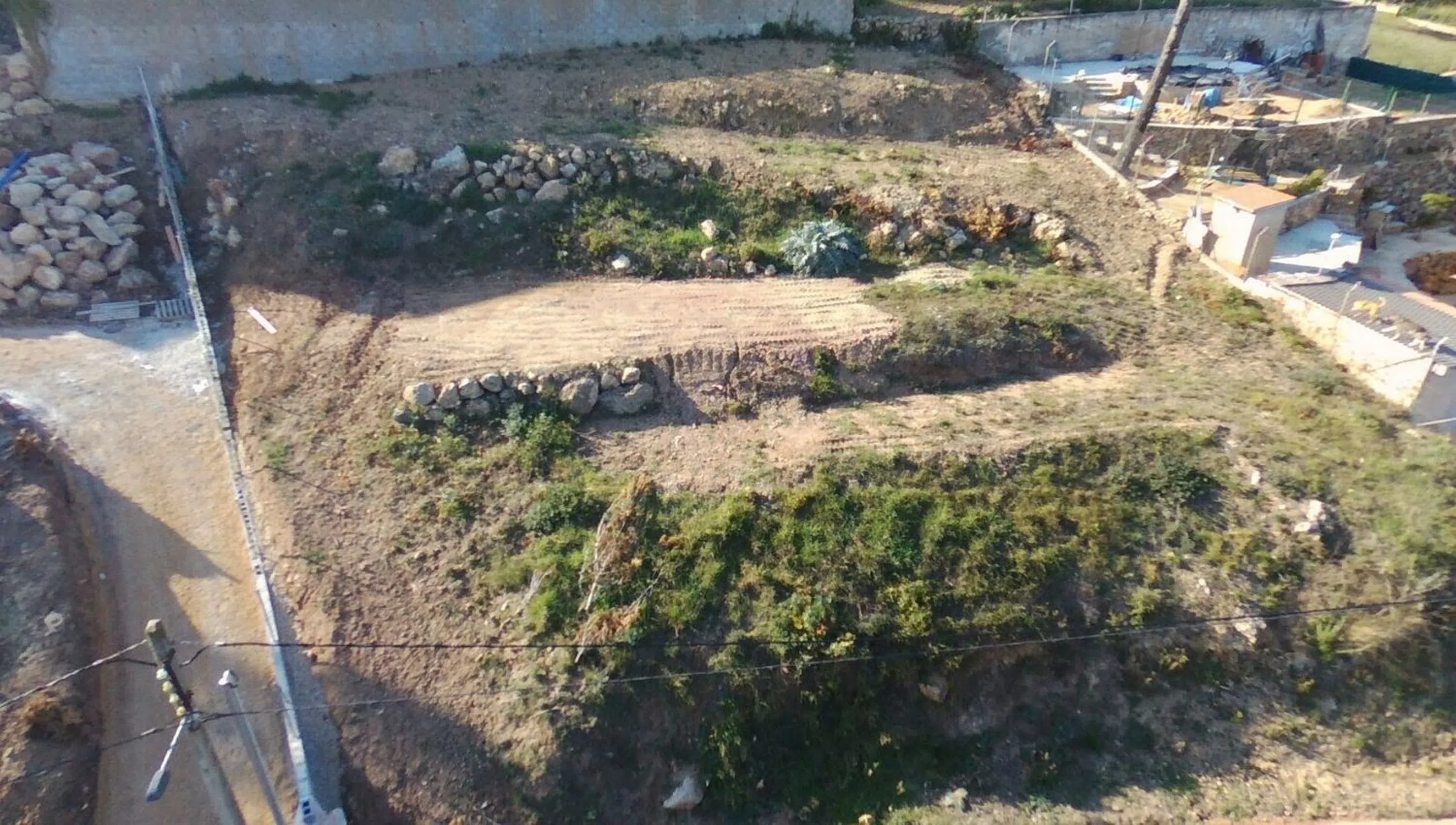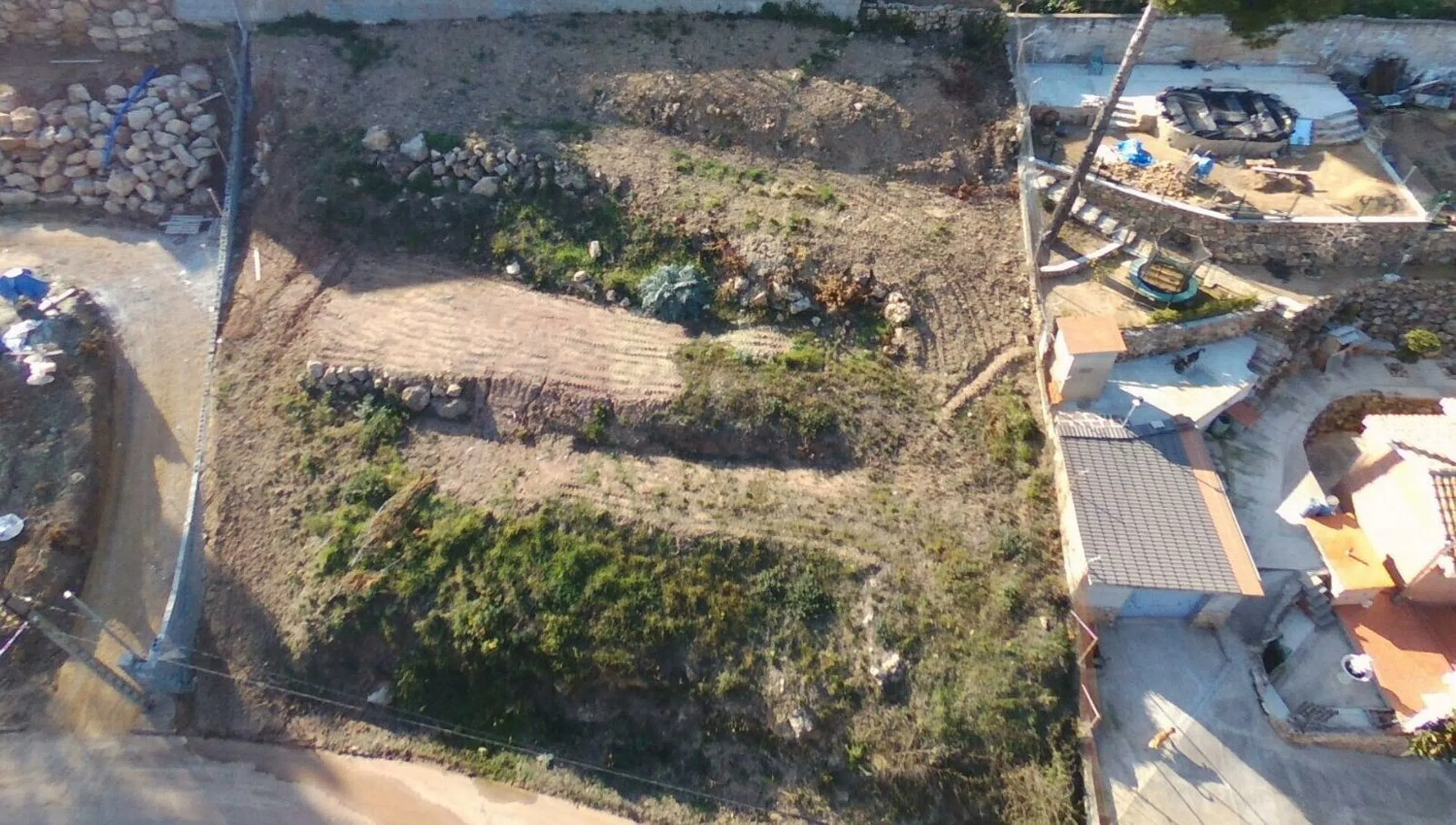 Terreno completamente limpio y sin árboles listo para edificar. También consta de proyecto de obra. Hechos todos los muros con las fincas colindantes, al hacer la reparcelación salieron 17 metros más de lo que marca en escritura, ya constan en el ibi del ayuntamiento. Acceso directo a la salida nueva de la variante a la N-340. Con buenas vistas y muy soleado, perfecta altura para hacer garaje arras de calle y casa encima.