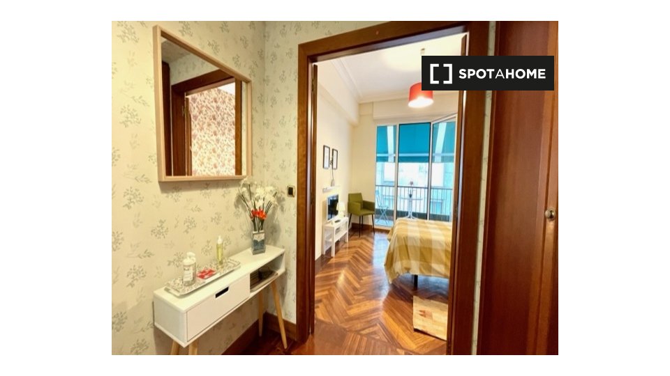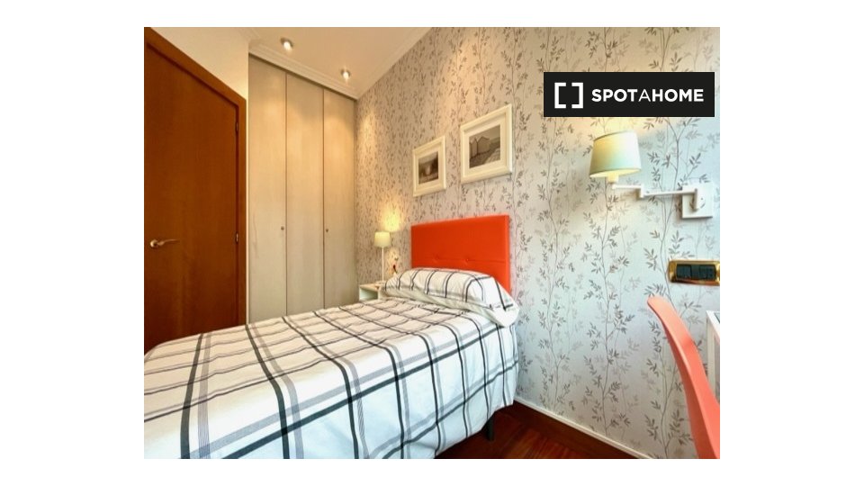 Zimmer zu vermieten in möblierter 6-Zimmer-Wohnung in Rodríguez Arias Kalea. Die Unterkunft befindet sich im 6. Stock eines Gebäudes mit Aufzug.
