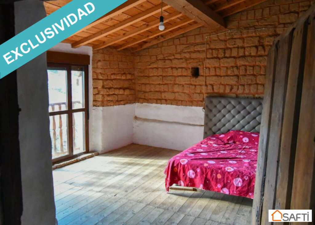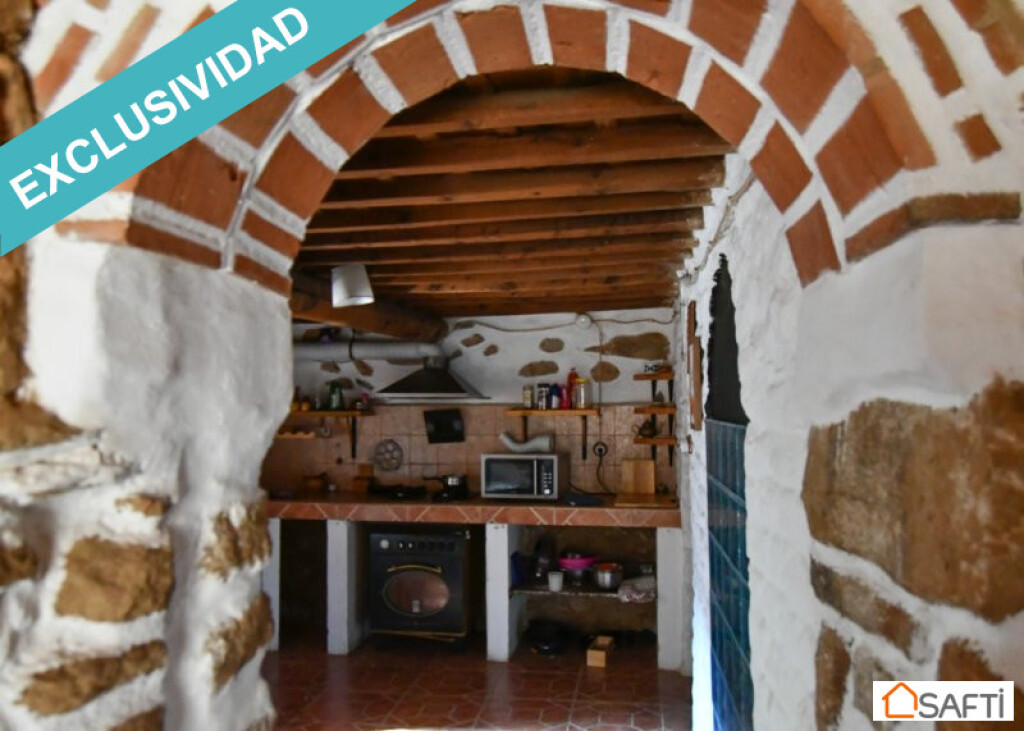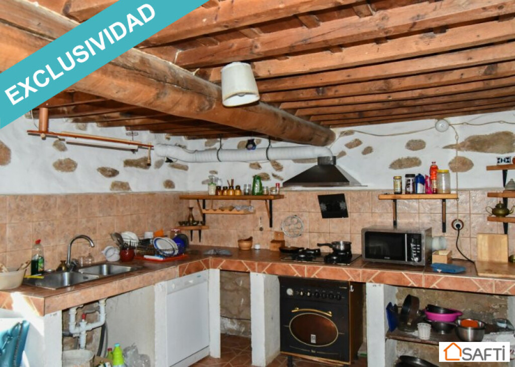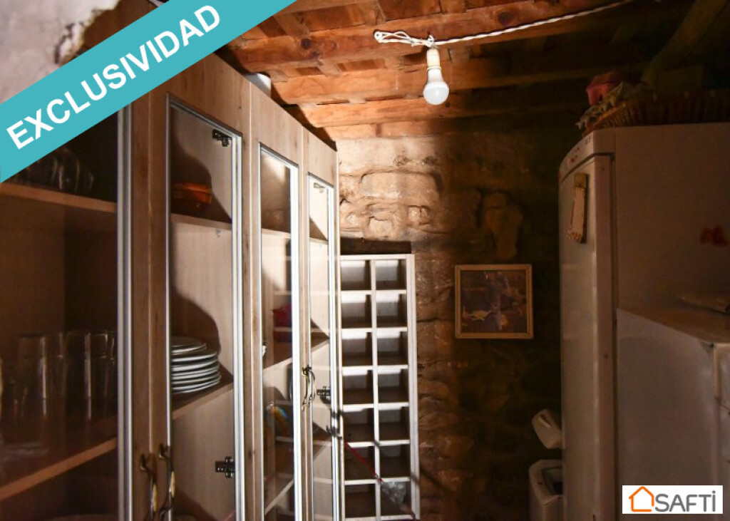 Casa de piedra del año 1.900 con un salón grande (48m2) con estufa de leña, patio amplio con un olivo, cocina de obra también con estufa de leña y dispensa grande. Cuarto de baño con ducha en la planta baja. Accedemos por unas escaleras de piedra y madera a la primera planto con una habitación grande de 25m2 con baño incorporado y otra habitación pequeña de unos 8m2 ideal para oficina. Ambas habitaciones se calientan en invierno desde la estufa de leña de la cocina. Hay radiador eléctrico en el salón y agua caliente con gas. La casa ha experimentado varias reformas (por ejemplo, las ventanas y puertas de climalit) pero lleva mucho tiempo vacía y requiere una cierta modernización sobre todo en lo que a los cuartos de baño se refiere y -sobre todo- el calor humano que seguramente traerán los próximos propietarios.