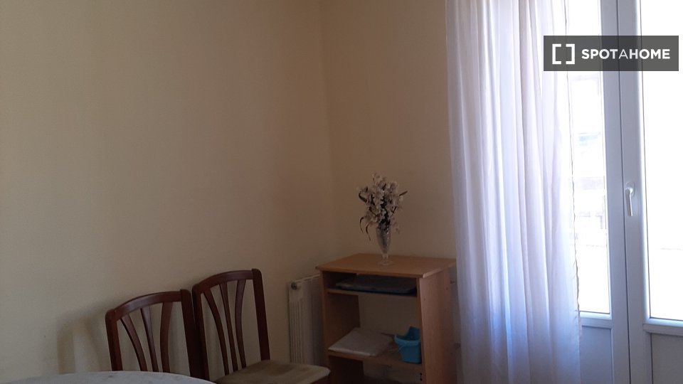 Zimmer zu vermieten in einer möblierten 4-Zimmer-Wohnung in C. Cervantes. Das Anwesen verfügt über eine ausgestattete Küche und einen Balkon.
