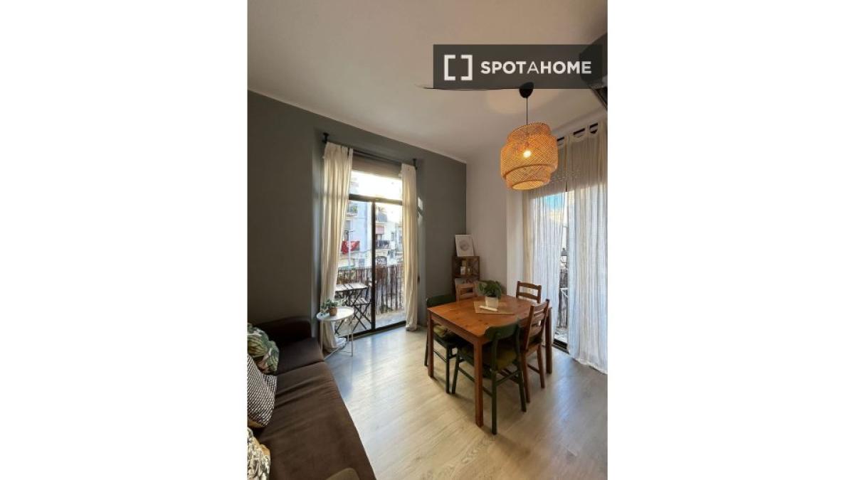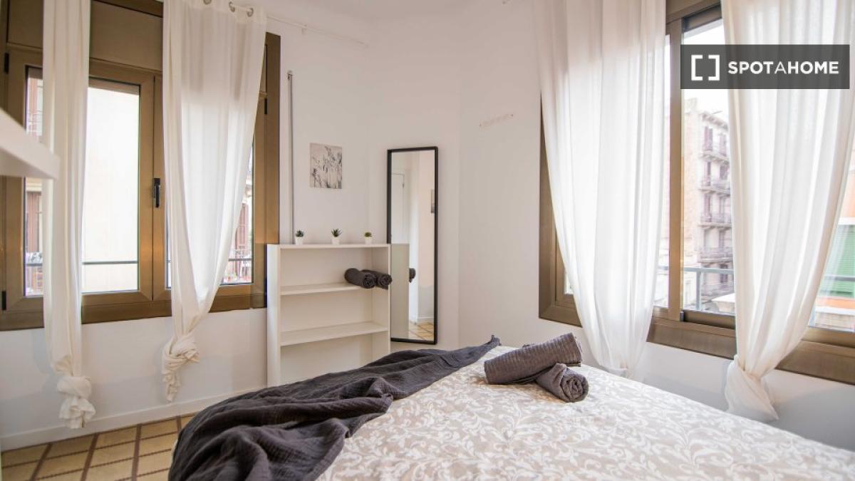 Sind Sie Berufstätiger oder Student und suchen eine gemütliche Unterkunft im Herzen Barcelonas? Spotahome freut sich, Ihnen dieses voll möblierte Zimmer in einer 5-Zimmer-WG im lebhaften Vie...