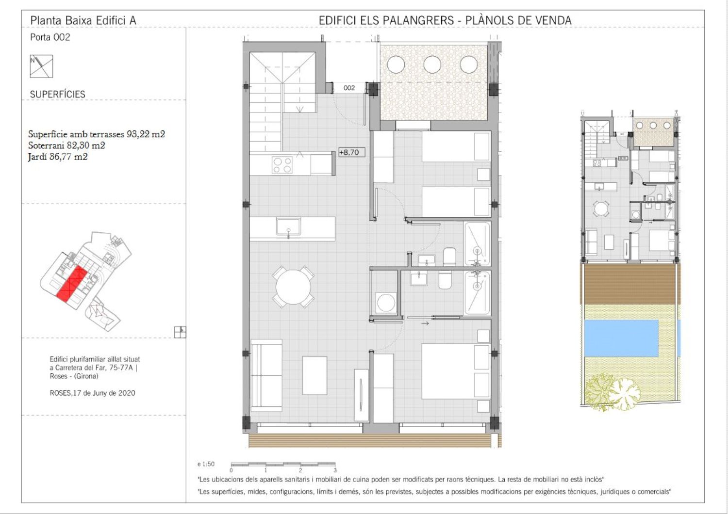 Situada en una posición privilegiada y delante la playa Els Palangrers con una preciosas vistas al mar mediterráneo y la bahía de Roses. La promoción está situada al lado del puerto deportivo de Roses, en PRIMERA LÍNEA DE MAR, a cinco minutos a pie del casco urbano del municipio de Roses y delante de la magnífica playa de Els Palangrers. Sus vistas al mar de la bahía de Roses, el cabo de Begur, la Escala, Empuriabrava, las playas de Sant Pere Pescador y sus aguas cristalinas del mar mediterráneo son impresionantes. En una de las mejores poblaciones de la Costa Brava, con una gastronomía inmejorable gracias al puerto pesquero.Esta lujosa promoción consta de 15 viviendas de 2 y 3 habitaciones y 28 plazas de parking. Impresiona, no sólo por su inmejorable ubicación en PRIMERA LÍNEA DE MAR y por su arquitectura moderna, mediterránea y con los mejores materiales. El complejo tiene 2 bloques, uno de 9 viviendas y otro de 6 viviendas colocadas majestuosamente en forma escalonada para que todas las viviendas disfruten de unas magníficas vistas al mar. En medio de los 2 bloques se sitúa la piscina desbordante.La promoción está en construcción desde junio del 2021 y estará finalizada el 2º semestre de 2022.