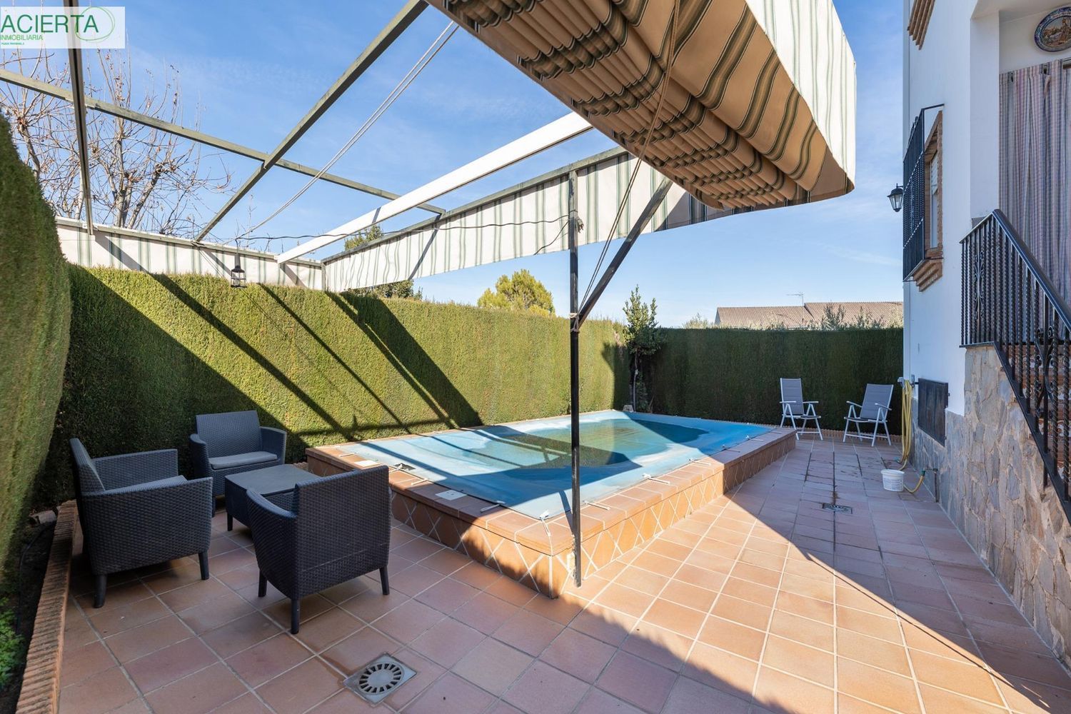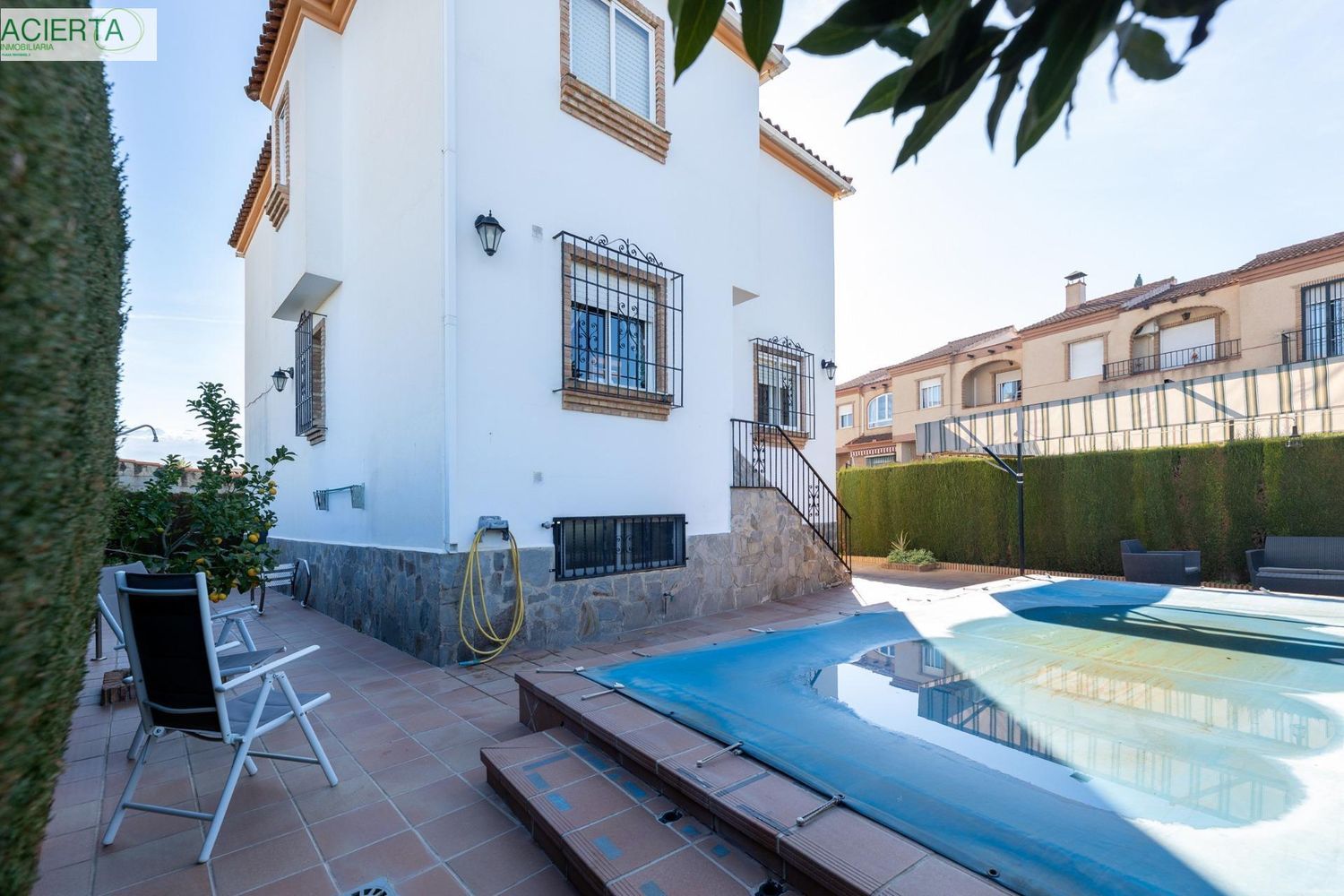 ¿Necesitas un lugar donde poder disfrutar de la tranquilidad de la naturaleza y la compañía de los tuyos? Si es así, este chalet independiente es perfecto para ti.Con una parcela de 357 metros cuadrados, podrás disfrutar de un amplio espacio al aire libre donde relajarte, jugar con los niños o simplemente disfrutar de la compañía de tus amigos. La parcela cuenta con una gran piscina, ideal para refrescarte en los días de verano, y varias zonas de descanso donde podrás disfrutar del sol o de la sombra.La vivienda, de 226 metros cuadrados construidos, cuenta con todo lo que necesitas para vivir cómodamente. En la planta baja, encontrarás un amplio salón-comedor de 30 metros cuadrados dividido en dos ambientes, una cocina con salida al jardín, una habitación que se puede usar como sala de estar, despacho o dormitorio, y un aseo.La planta superior cuenta con cuatro dormitorios dobles y dos cuartos de baño, uno de ellos integrado en el dormitorio principal. Los dormitorios son amplios y luminosos, y los cuartos de baño están equipados con todo lo necesario para tu comodidad.En el semisótano, encontrarás una habitación con ventana que se puede usar como trastero, cuarto de desahogo o dormitorio de invitados, un aseo, una amplia zona de aparcamiento para dos coches y una zona de almacén.Este chalet destaca por su luminosidad, ya que cuenta con grandes ventanales que permiten que la luz natural inunde la vivienda. Además, está ubicado en un entorno residencial muy tranquilo, perfecto para descansar y desconectar del estrés del día a día.La vivienda está muy bien comunicada y tiene la parada de autobús muy cercana. Además, cuenta con placa solar para el agua corriente sanitaria, aire acondicionado en el salón y dobles ventanas en toda la casa.Si estás buscando un hogar donde poder disfrutar de la tranquilidad, la naturaleza y la compañía de los tuyos, ¡este chalet es perfecto para ti!¿Quieres saber más? ¡Llámanos y concertaremos una visita!* El PVP indicado no incluye impuestos ni gastos de Notaría y Registro.* Honorarios de agencia (2,5% del precio de venta + IVA, mínimo 2.500€ + IVA) no incluidos.* Las superficies expresadas en esta página tienen carácter descriptivo y son aproximadas. Los precios pueden ser susceptibles de modificación sin previo aviso.