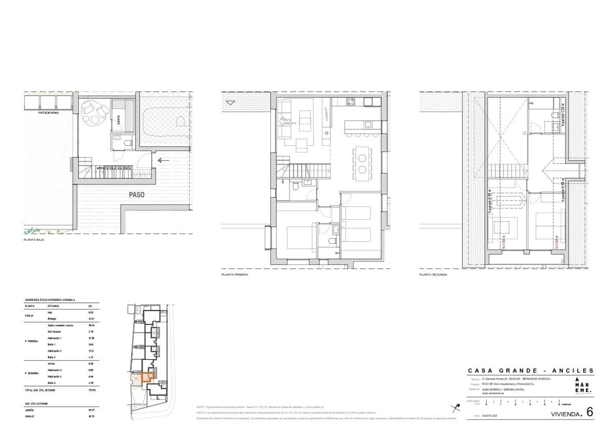 ¡Última vivienda disponible en Residencial Casa Grande! Próxima construcción de 7 Adosados de lujo con jardín, en Anciles, la más señorial y pintoresca localidad del Valle de Benasque. En una ubicación inmejorable, junto a los jardines de la palaciega 'Casa Sort'. Muy próximo a la Estación de Cerler, pronto prácticamente unida con el nuevo Telecabina, y a la Estación de esquí de fondo de Llanos del Hospital, a 14 kilómetros de distancia. Y a tan sólo 2 kilómetros de Benasque, con todos sus servicios y comodidades, pero en un entorno mucho más señorial, tranquilo y silencioso. El Adosado nº6 es excepcional: En planta baja: dispone de bodega/'apresky' con aseo, siendo posible instalar una sauna, o si se prefiere un comedor con cocina auxiliar para aprovechar mejor el jardín privativo de 65 m2, orientado al Sur. En planta primera: acogedor salón 'bajocubierta' con orientación Sur, amplia cocina-comedor, 2 habitaciones y 2 baños completos. En planta segunda (buhardilla): 2 habitaciones esquineras con orientación Este, 1 zona de paso (estudio) y 1 baño completo. Piscina junto a zona ajardinada comunitaria. Estructura de Entramado ligero de madera. Calefacción por aerotermia. Toda la Promoción dispondrá de gran cantidad de detalles a la altura de una promoción de lujo, a nivel de acabados, materiales, aislamientos e instalaciones. Se adjunta Memoria de calidades. La fecha prevista de inicio de obras es primavera de 2026, con finalización de obra prevista para la Navidad del mismo Año. ¡Si quiere conocer más detalles del proyecto, no dude en ponerse en contacto con nosotros!