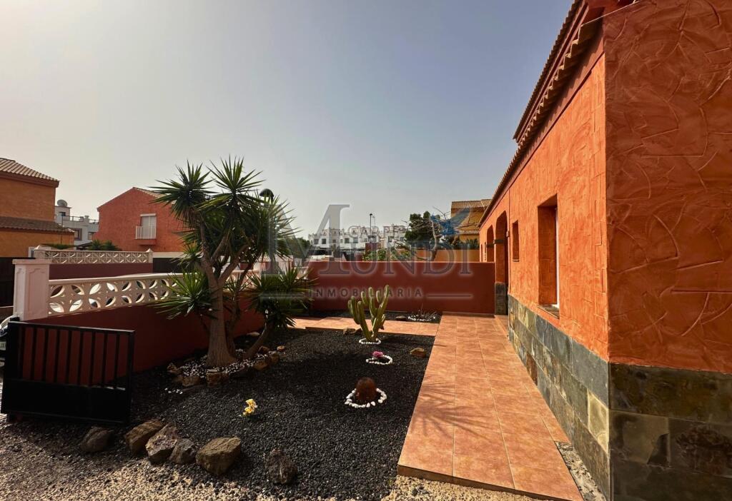 Encantadora villa pareada de 115 metros cuadrados ubicada en la prestigiosa zona de Corralejo, La Oliva. Con una parcela de 250 metros cuadrados, esta propiedad ofrece un espacio generoso y luminoso. Consta de 3 habitaciones y 2 baños, perfecta para disfrutar en familia o con amigos.La propiedad se encuentra en buen estado, con una cocina equipada con muebles y una hermosa carpintería interior de madera que agrega un toque cálido y acogedor. Orientada al norte, esta villa proporciona una agradable frescura durante los días calurosos. El suelo de baldosa brinda una fácil limpieza y mantenimiento.Entre las comodidades adicionales se incluyen un balcón para disfrutar del aire fresco, un depósito de agua, un jardín bien cuidado, un patio para relajarse al aire libre, conexión satelital y un trastero para almacenamiento adicional. Además, cuenta con acceso a campos de golf cercanos, supermercados convenientes y unas vistas impresionantes al mar que te dejarán sin aliento.Con un gasto de comunidad de solo 25 euros, esta villa ofrece una excelente relación calidad-precio. Además, se incluye un espacio de estacionamiento para mayor comodidad. No pierdas la oportunidad de adquirir esta maravillosa propiedad por tan solo 370,000 euros. ¡Contáctanos hoy mismo para más información!