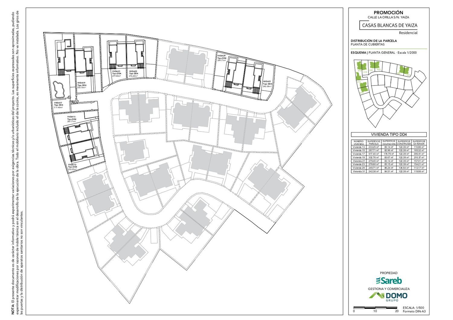 Promoción de 31 chalets unifamiliares situada en Yaiza, en Lanzarote. Se distribuyen a lo largo de una vía interior, con acceso desde dos calles, una de ellas vía principal dentro del municipio.Las viviendas son de dos plantas con 3 dormitorios, dos baños y aparcamiento abierto en superficie. Solo una vivienda dispone de piscina y garaje bajo rasante (vivienda 17). Grandes parcelas privativas.Se trata de un proyecto que se encuentra ejecutado aproximadamente en un 90%. Las obras se han reanudado en octubre de 2022, y está previsto que finalicen en la otoño de 2023.Se trata de una excelente oportunidad que se puede destinar a primera vivienda pero también para segunda y como inversión.