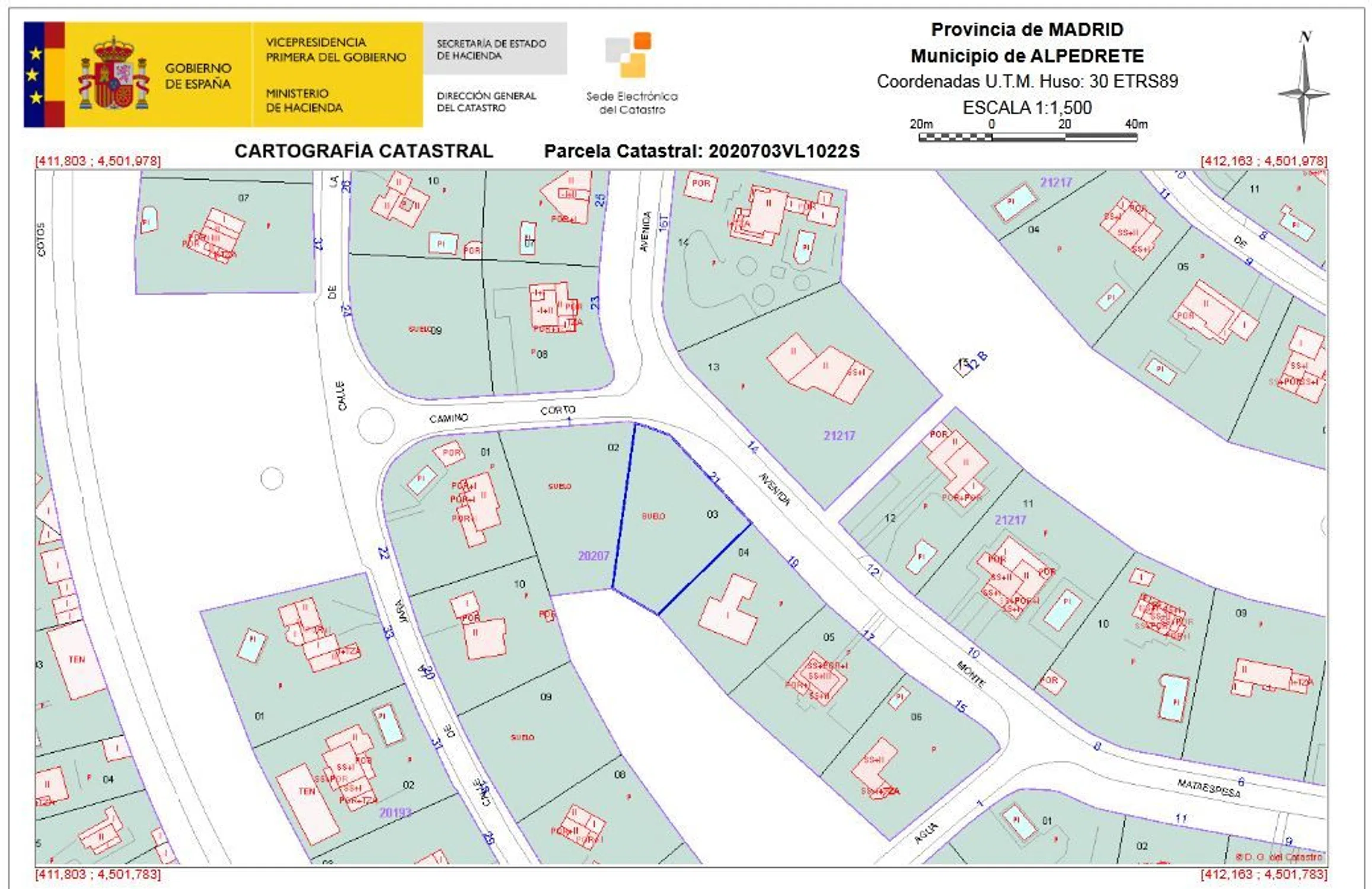 Magnifica parcela residencial en Avda. del Monte, 21 de Alpedrete, en una de las mejores Urbanizaciones de la Sierra, Urbanización Mataespesa, con vigilancia y zonas verdes. Tiene una edificabilidad máxima construida de hasta 241,40 m2 sobre rasante en 2 plantas, más 70 m2 bajo rasante para garaje que no contabiliza a efectos de edificabilidad total. Muy tranquila, bien orientada y de planta trapezoidal; está provista de arbolado (encinas de mediana altura); linda al N. E. con la Avenida del Monte, al sureste con parcela edificada, al N. O. con parcela no edificada y al S. O. con una amplia Zona Verde interior de Uso Público, disponiendo de vistas hacia la Sierra de Guadarrama. Se encuentra a solo 5 minutos del núcleo urbano de Alpedrete, con todos los servicios (supermercados, centro de salud, colegios, etc. ) y excelentes conexiones de transporte a Madrid por autobús y ferrocarril. La parcela se encuentra a un par de minutos de la Estación de ferrocarril. Venta directa por los propietarios; abstenerse agencias.