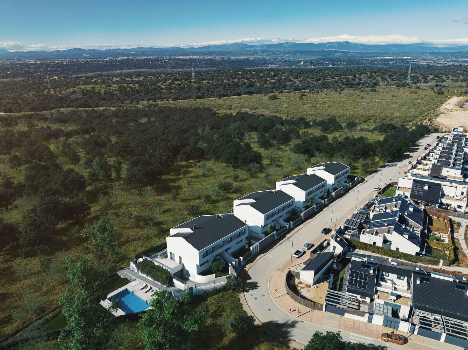 , es la nueva propuesta de Asentis en Boadilla del Monte, Una promoción única compuesta por 6 chalets pareados, diseñados con precisión y dedicación para satisfacer todas las necesidades de tu familia.Ubicada en El Pastel, , dispone a su alrededor de una amplia y variada oferta de servicios, incluyendo farmacias, supermercados, colegios y zonas verdes, lo que garantiza una vida cómoda y práctica. Además, su excelente comunicación con el centro de Madrid te permite disfrutar de la serenidad de un entorno residencial sin renunciar a las ventajas de la vida urbana.La calidad es el sello distintivo de la promoción que se reflejan en cada detalle, donde la PIEDRA NATURAL predomina en la fachada, delineando y configurando el diseño exterior de los chalets, asegurando que tu nuevo hogar sea un lugar con un estilo único.Cada chalet consta de una superficie construida de más de 350 m2 y amplias zonas exteriores privadas, y ajardinadas de más de 100 m2, en las que podrás disfrutar a lo grande con la familia y amigos.Estos exclusivos chalets cuentan con 6 dormitorios, configurados en tres plantas para que el espacio sea el protagonista de vuestra nueva casa, ofreciendo amplitud y confort en cada rincón. En el interior te recibirán amplios espacios, como el salón de doble altura que no solo brinda un ambiente elegante, sino que también crea una conexión visual única con la planta superior, como resultado un diseño contemporáneo y funcional para tu nuevo hogar.Queremos que tu nuevo hogar contribuya a este objetivo con un sistema de energía limpia, descarbonizada y renovable como es la aerotermia, asegurando un ambiente sostenible para ti y tu familia. Este equipo suministrará de una manera eficiente y sostenible la energía necesaria para producir agua caliente, así como el funcionamiento del sistema de suelo radiante y refrescante, ubicado bajo un solado porcelánico en efecto roble natural. Para poder ir un paso más allá y contribuir a minimizar la huella de carbono de su vivienda, todos los chalets cuentan con una preinstalación de energía fotovoltaica que facilitará la posibilidad del autoconsumo energético y contar con un suministro de energía 100 % limpia y renovable.Además, cada chalet cuenta con un garaje privado bajo rasante y acceso a una piscina comunitaria para ofrecerle un estilo de vida cómodo y exclusivo.En , cada detalle ha sido cuidadosamente planificado para ofrecerte el máximo confort y calidad de vida. Vive en un entorno excepcional, donde el diseño moderno y el lujo se combinan a la perfección.