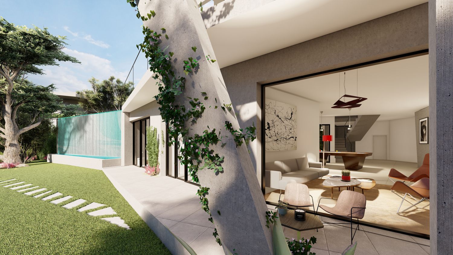 Exclusiva villa de diseño de autor de 600 m² en comunidad cerrada de 7 viviendas conectadas con la naturaleza en la privilegiada urbanización de Las Lomas, Boadilla del Monte. Diseñadas para vivir en una exclusiva urbanización de 7 viviendas con seguridad 24 horas, sin renunciar a la comodidad de una villa de lujo con grandes espacios y fantástico jardín privado. Cada vivienda del conjunto es única y se ha definido respetando la naturaleza de su entorno, buscando la mejor orientación para inundar de luz los espacios. Esta villa está diseñada para vivir en una cómoda planta principal de 330m2 y una planta baja que queda sobre rasante gracias a la orografía de la parcela con 290m2 destinado al ocio y un fabuloso garaje de 120m2.Cuenta además con una piscina tipo infinity que acaba en una impresionante cascada jugando con las diferentes cotas de la parcela y que hace de esta casa un auténtico capricho del diseño. Las viviendas disponen de instalación de domótica para un mayor confort y seguridad y se han diseñado de manera sostenible buscando la máxima eficiencia energética contando con sistema de calefacción por aerotermia, carpinterías de máximo aislamiento térmico, calefacción por suelo radiante entre otros. Materiales y acabados de primeras marcas con posibilidad de personalización de interiores y acabados. Confort, diseño, naturaleza y seguridad son los pilares de estas villas de vanguardia a sólo 15 km de la Madrid de amplísimos espacios, llenos de luz y sofisticación donde los materiales nobles cobran protagonismo y se fusionan con su entorno en plena naturaleza. Viviendas de autor en plena naturaleza sin renunciar a ninguna comodidad. Vivienda inteligente con instalación de domótica para un mayor confort y seguridad. La urbanización cuenta seguridad 24 horas para el bienestar de sus vecinos. Las Lomas es una de las urbanizaciones con mayor demanda en la actualidad gracias a sus cuidados espacios verdes, rodeada de montes de encinas que constituyen un entorno de gran belleza ambiental. Es un entorno residencial íntimo, privad y discreto. La urbanización pertenece al municipio de Boadilla del Monte, a sólo 15 Km de Madrid con excelentes comunicaciones y dotada de todos los servicios, colegios internacionales y hospitales que ha atraído en los últimos años a residentes con las rentas per cápita más elevadas a nivel nacional.