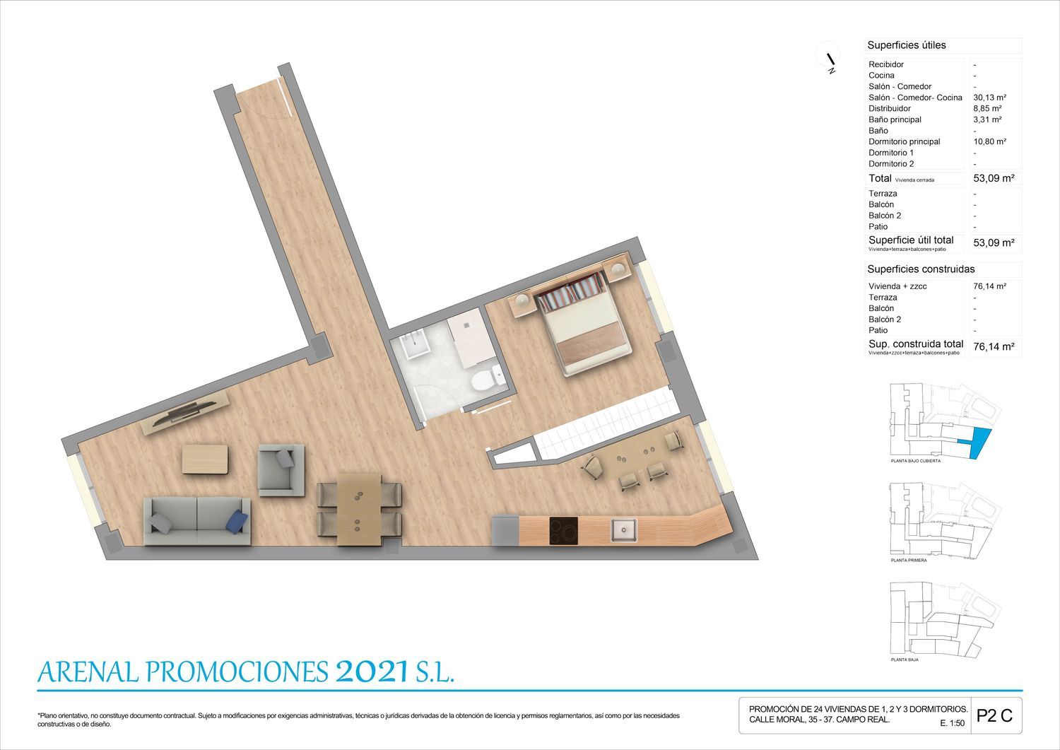 AC HOME presenta una fantástica promoción de viviendas de Obra nueva "ARENAL 2" a tan solo 30 minutos de Madrid Capital.Conjunto Residencial privado con instalaciones de primera calidad que ofrece 24 viviendas exclusivas de 1,2 y 3 Dormitorios, todas con Plaza de Garaje y Trastero incluidas en el precio. Hogares cuidados al detalle que incorporan las mejores calidades: Carpintería exterior de PVC con rotura del puente térmico con apertura oscilobatiente y doble vidrio "Climalit", Puerta de entrada blindada, armarios empotrados en todos los dormitorios, cocinas amuebladas y equipadas con Horno, placa y campana extractora, Preinstalación para carga de coches eléctricos en garajes.Interiores confortables y de alta eficiencia energética, Calefacción de gas individual y preinstalación de aire acondicionado en Salón y Dormitorio Principal. Una urbanización dotada de unas completas zonas comunes: área infantil para los más pequeños y piscina.Campo Real está perfectamente comunicado por varias líneas de autobús (313, 320 y 321), y acceso por carretera desde la A-3 y R-3.En AC HOME, nos ponemos a su disposición para poder ayudarle en la compra de su vivienda, contamos con departamento financiero propio.