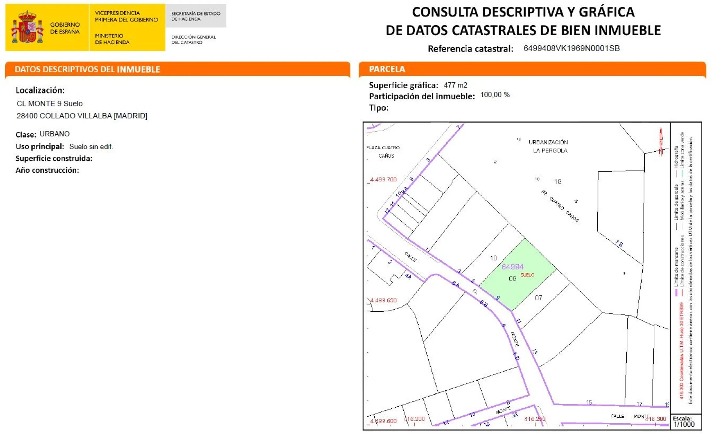 Oportunidad única en pleno centro de Collado Villalba! Este solar se encuentra en una ubicación privilegiada, próximo al Ayuntamiento y rodeado de supermercados y servicios. Con una superficie aproximada de 477 metros cuadrados, este terreno ofrece la posibilidad de construir un bloque en altura. Con acceso vía urbana y situado en un núcleo urbano, cuenta con todos los servicios necesarios como agua, luz, alcantarillado y alumbrado público. Además, al ser de uso urbano, es ideal para desarrollar un proyecto residencial en altura, con la posibilidad de construir hasta 2 plantas. Aprovecha esta oportunidad única y construye en el corazón de Collado Villalba. ¡No dejes pasar esta oportunidad!