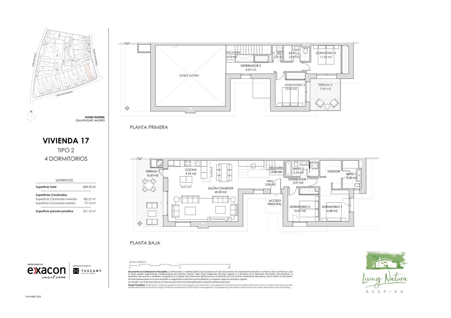 LIVING NATURARESPIRA LA NATURALEZAEsta nueva promoción está ubicada en La Colonia de Torrelodones, en la zona noroeste de Madrid y en una zona protegida del parque regional del curso medio del Guadarrama, concretamente en la urbanización Los Jarales a 4km del centro de Galapagar. Muy bien comunicada por autobús a cualquier punto de interés, zonas comerciales, colegios, universidades y estación de tren.Living Natura está compuesta por 28 nuevas viviendas que se construirán sobre una parcela de 20.742 m2 consolidada con diversas especies de árboles. 26 viviendas serán pareadas y las otras dos serán villas independientes. El residencial Living Natura contará con viviendas luminosas de tres y cuatros dormitorios, rodeadas de un ambiente muy natural y dotadas de la máxima eficiencia energética y sostenibilidad. El complejo residencial ofrece zonas comunes para toda la familia, en un enclave inigualable por su vegetación, con amplias zonas ajardinadas naturales y piscina comunitaria.Estas viviendas disponen del sello de sostenibilidad de la promotora, en línea con el concepto Smart Living de Exxacon, y aquellos clientes que lo deseen podrán instalar también placas solares fotovoltaicas.
