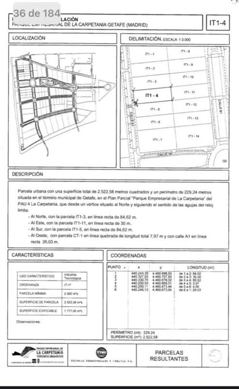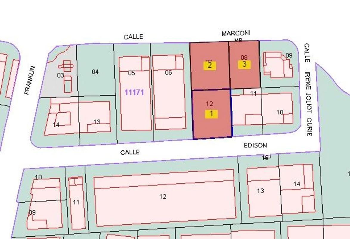 TRES PARCELA URBANAS INDUSTRIALES Libres de edificaciones. Excelente ubicación con fachada a la calle Marconi 38-40 y calle Edison Uso Industrial. Terciario. Parcelas de 3.321 m², con una...