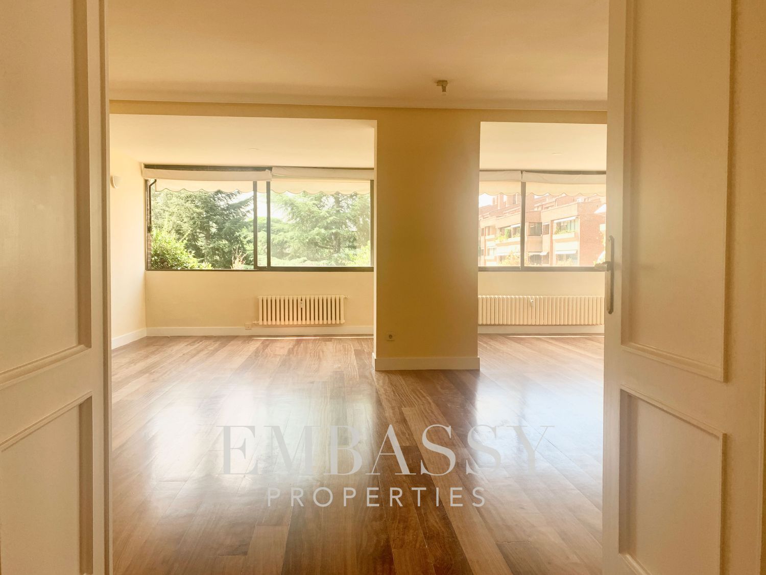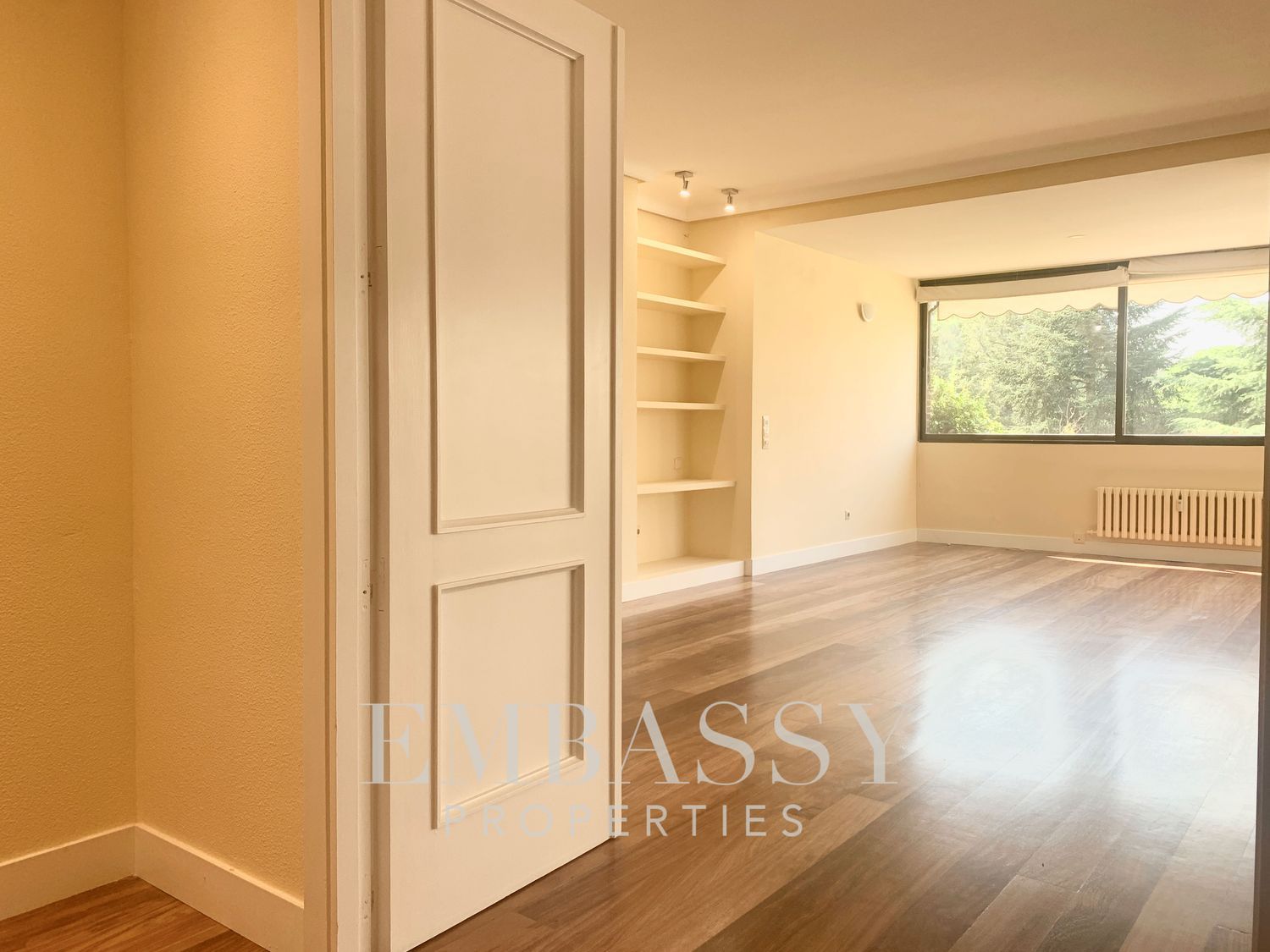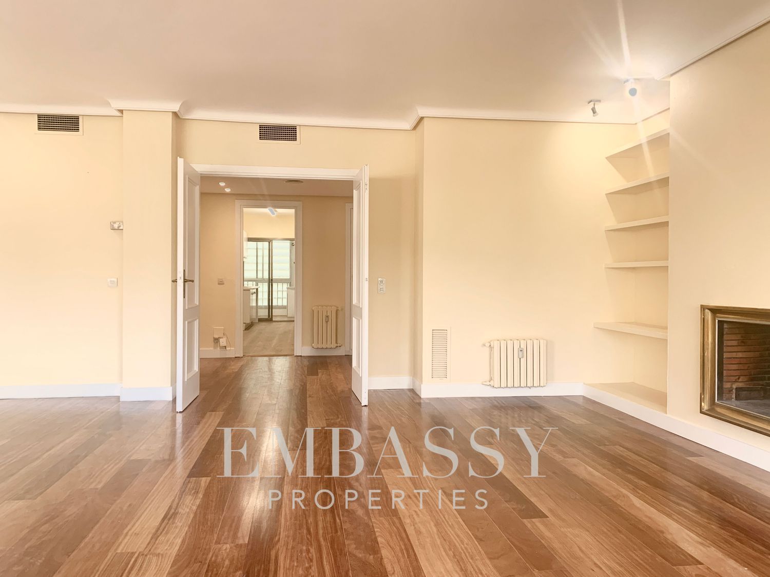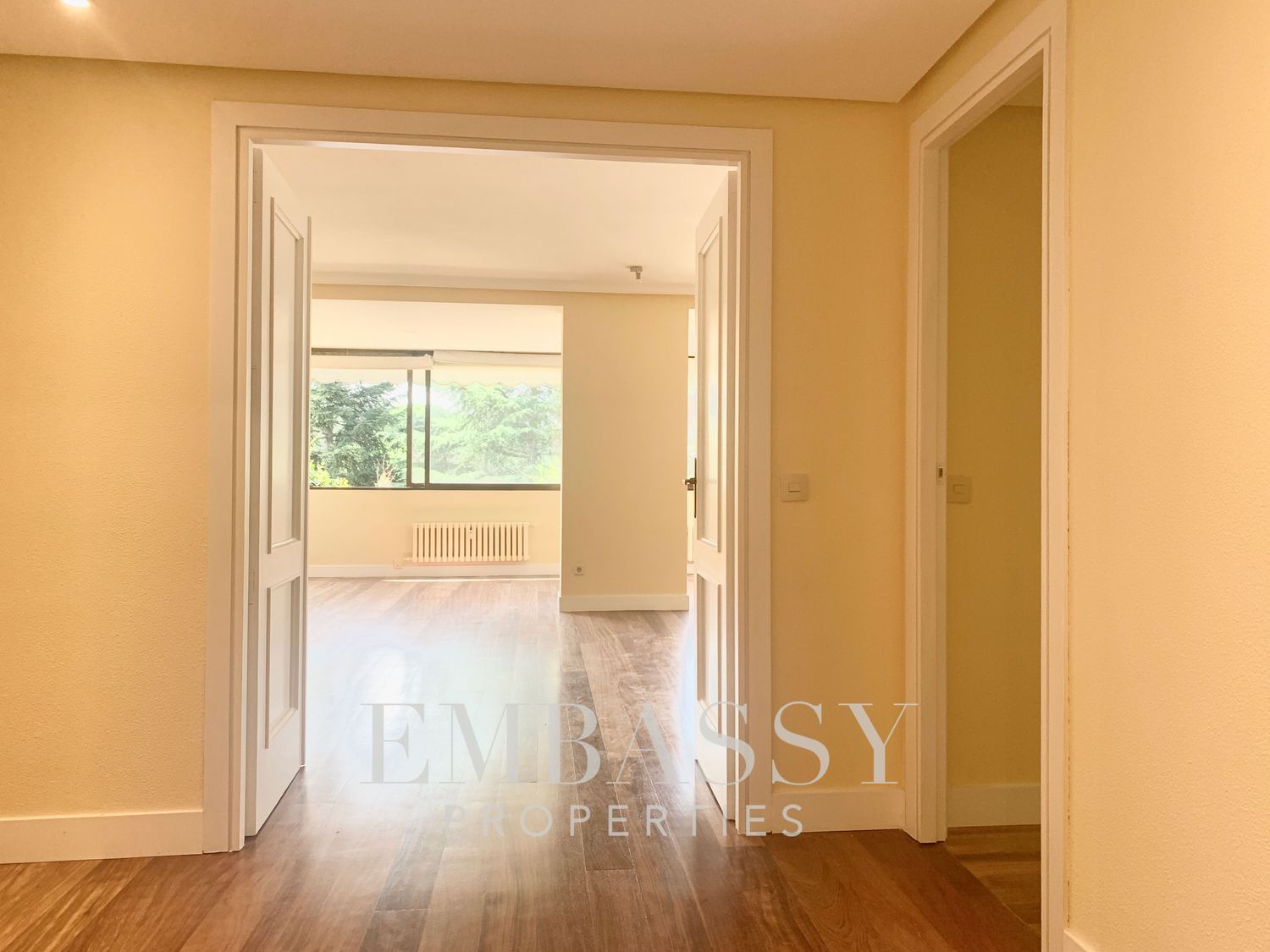Ref. 1755 Embassy Properties presenta un inmueble en una de las zonas residenciales más exclusivas de la capital, EL SOTO DE LA MORALEJA - LA MORALEJA.El inmueble se encuentra en un recinto completamente privado con seguridad 24h, piscina, cancha de tenis, gimnasio, jardines, etc. DOS (2) plazas de garaje incluidas en el precio.Distribución:- Hall de acceso a la vivienda con armario Gabanero para almacenar prendas exteriores.- Gran Salón / Comedor, con orientación Sur, dispone de grandes ventanales con vistas a jardín privado, el salón dispone de chimenea con estanterías.- Cocina, muy amplia, completamente equipada con todos los electrodomesticos nuevos a estrenar, tiene una gran zona de lavandería y habitación de servicio con baño en suite. La cocina, tiene una zona para almuerzos y puerta de servicio.- Una (1) habitación doble principal, armarios empotrados y baño en suite (ducha).- Una (1) habitación doble con dos(2) cuerpos de armario empotrados y ventanas al exterior (jardín privado). - Una (1) habitación doble con dos(2) cuerpos de armario empotrados y ventanas al exterior (jardín privado). Un (1) baño completo (ducha) en el pasillo, da servicio a las habitaciones anteriores.Un (1) trastero de 16m2 en la última planta del edifico con ventanas al exterior.Memoria de calidades:- Suelos en madera maciza "nuevos a estrenar" por toda la casa, porcelánicos en los baños.- Puertas y zócalos lacados en blanco.Urbanización privada/Piscina/ Pista de Tenis/ Gimnasio/Dos (2) Plazas de Garaje/Seguriadad 24h.Alrededores: Club de Tenis La Moraleja, Colegio San Patricio El Soto.