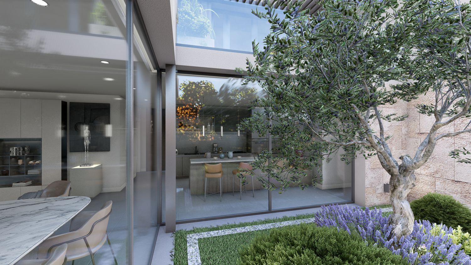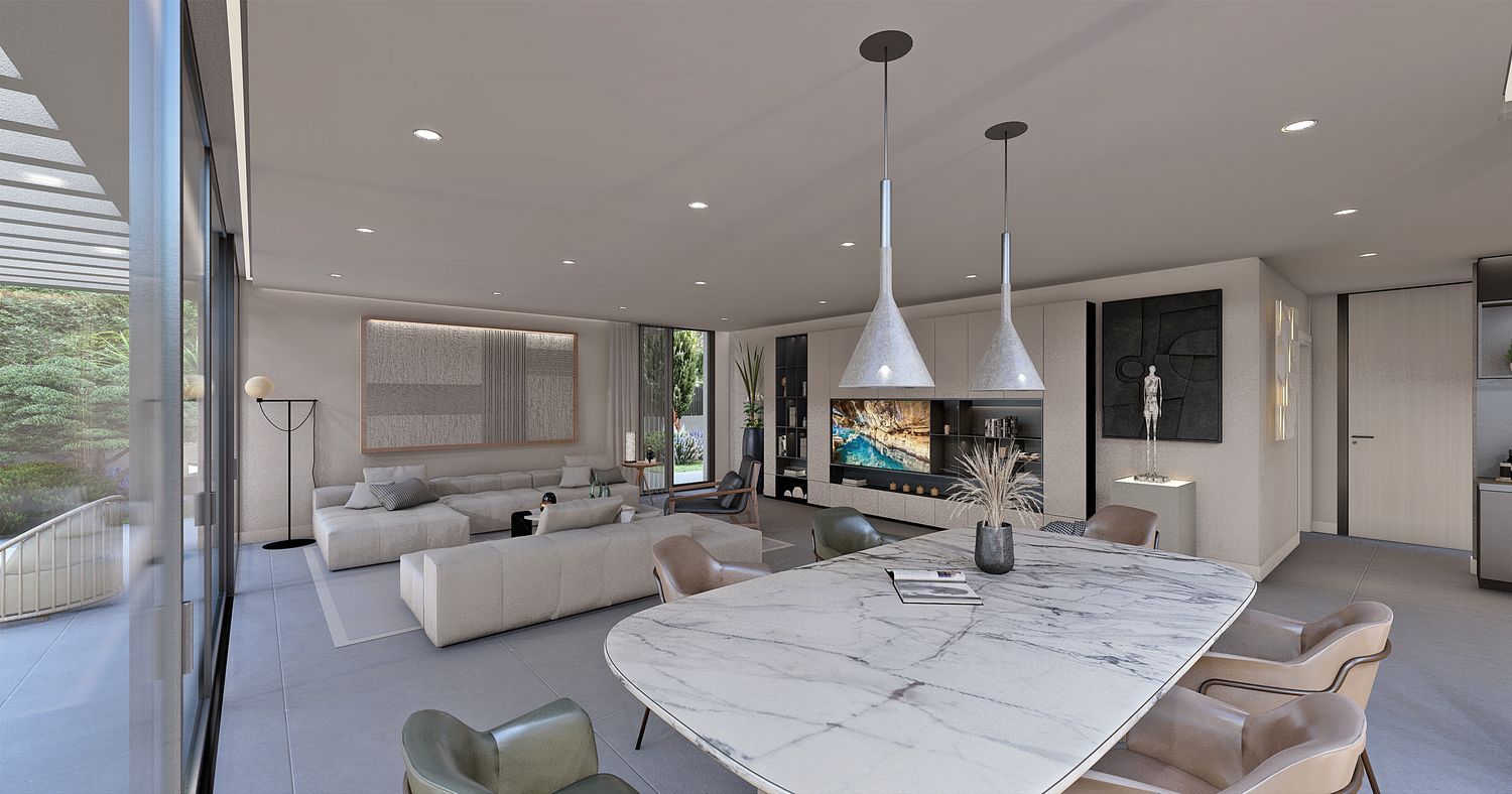 Genießen Sie eine unvergleichliche Energieeffizienz durch die Verwendung von Geothermie und Solarmodulen zur Eigenversorgung, was minimalen Verbrauch und maximalen Komfort garantiert. Das Haus hat eine Energieeffizienzklasse A, die ein umweltfreundliches, nachhaltiges Wohnen sichert. Die Hauptetage umfasst ein geräumiges und helles Wohn-Esszimmer, eine offene Küche und große Fenster, die den Raum mit natürlichem Licht durchfluten. Die motorisierten Rollläden und der direkte Zugang zum Garten bieten Komfort und Funktionalität. Das Hauptschlafzimmer, als Suite konzipiert, verfügt über ein eigenes Bad, einen Ankleideraum und einen Zugang zum Garten, wodurch ein intimer und exklusiver Raum entsteht. Diese Etage umfasst außerdem ein Arbeitszimmer, einen Dienstbereich, eine Waschküche und ein Gäste-WC.