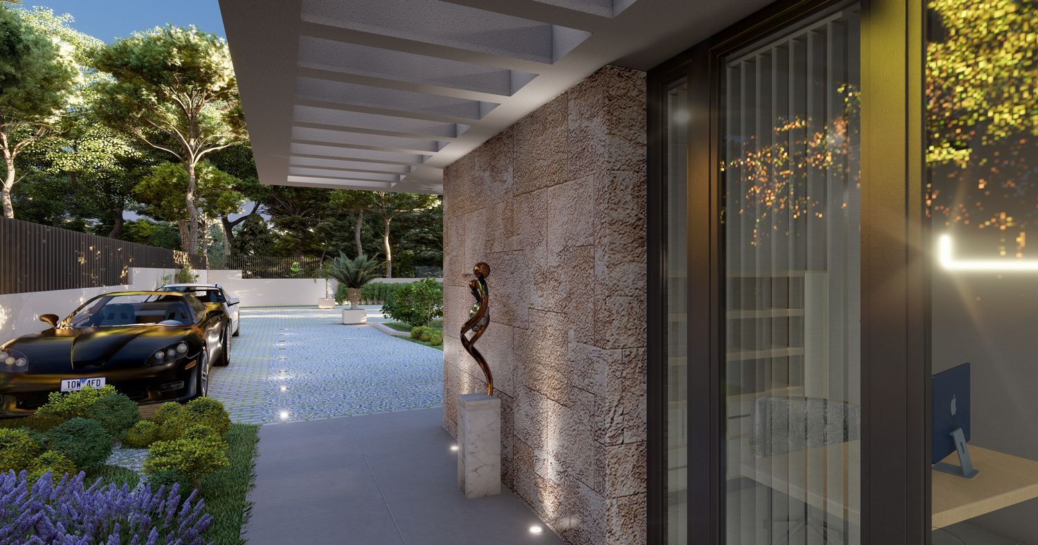 In der ersten Etage befinden sich drei Schlafzimmer, alle als Suite mit Terrasse und Ankleideraum, die jeder Familienmitglied größtmöglichen Komfort und Privatsphäre bieten. Passen Sie Ihr Zuhause durch die Auswahl hochwertiger Innenausstattungen an, mit großen Feinsteinzeugfliesen, PVC-Fenstern in zweifarbigem Design (außen graphitgrau und innen weiß) mit Doppelverglasung und sicherstellen des höchsten Maßes an Energieeffizienz. Die PVC-Rollläden mit thermischen Lamellen sorgen für hervorragende Isolation.