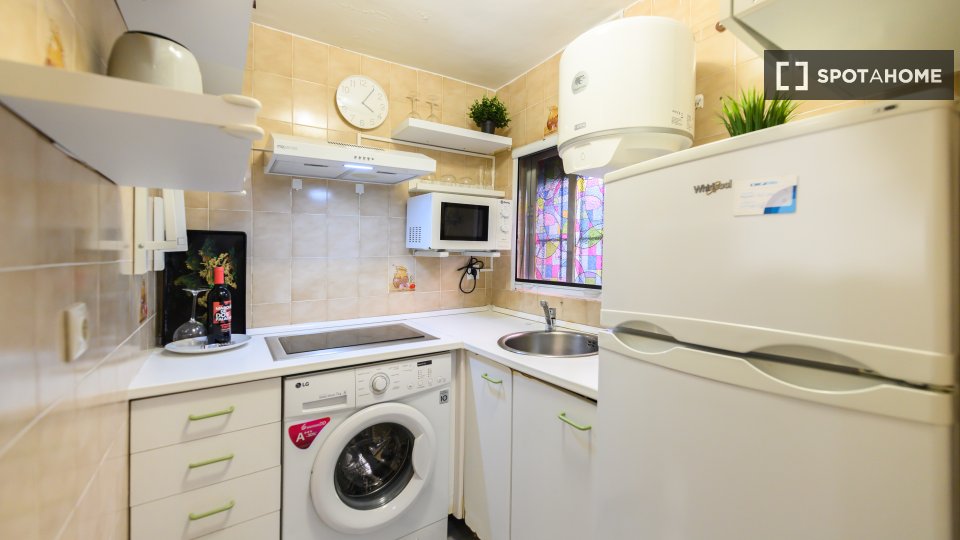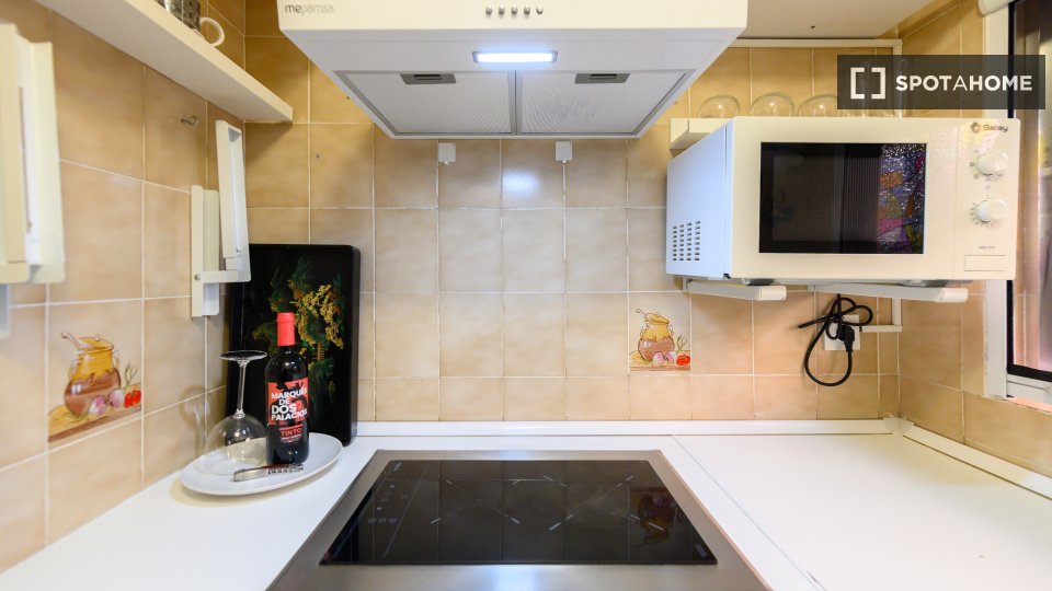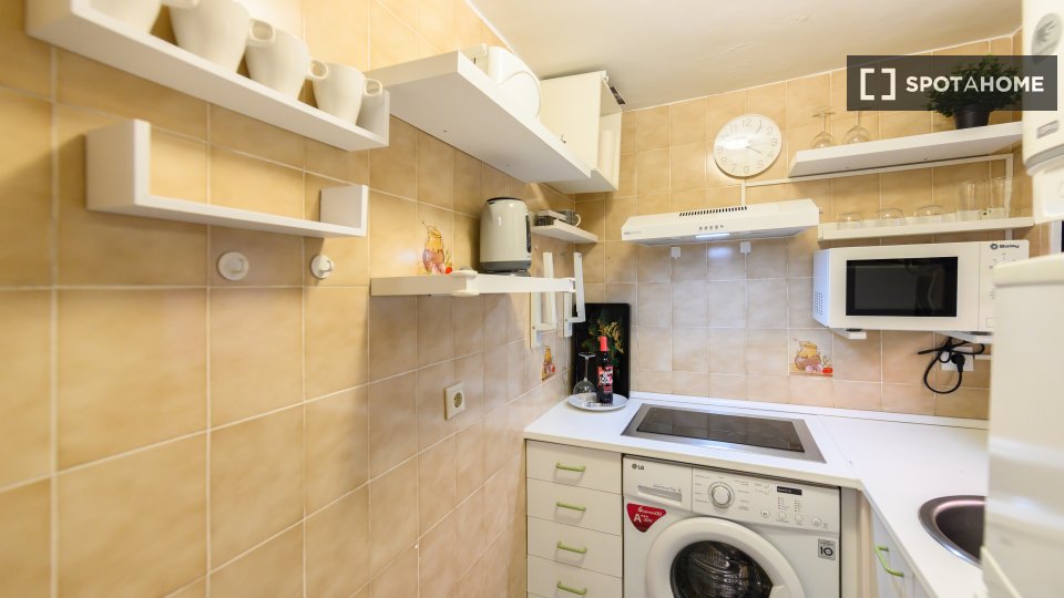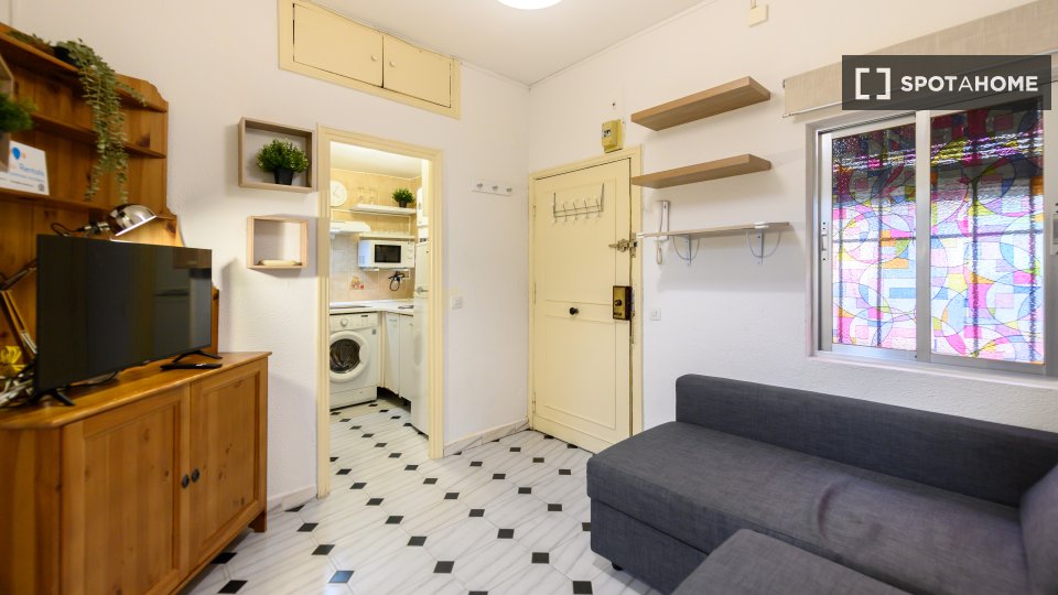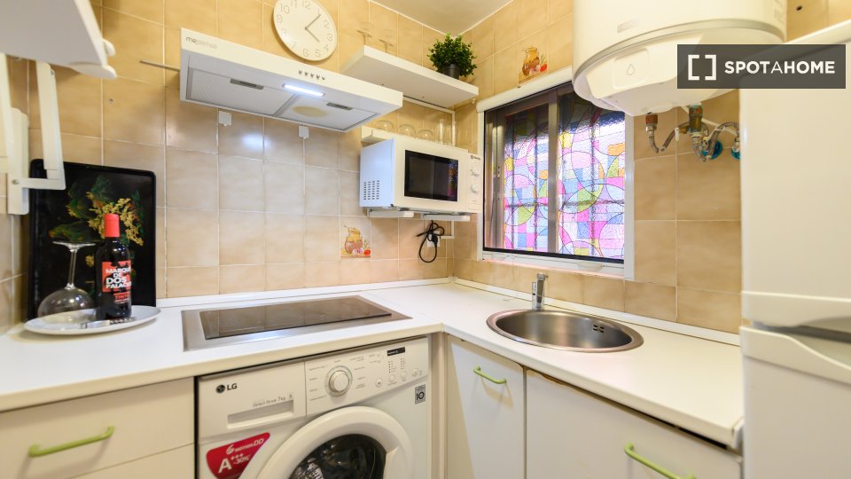 Entdecken Sie dieses charmante, möblierte Studio im Herzen von Trafalgar, Madrid. Die Unterkunft verfügt über eine voll ausgestattete Küche und individuell regulierbare Klimaanlagen für ein angenehmes Wohnklima. Bitte beachten Sie, dass Haustiere und Rauchen nicht gestattet sind und die Unterkunft weder Balkon noch Terrasse besitzt. Eine Waschmaschine steht Ihnen zur gemeinsamen Nutzung zur Verfügung. Die Nebenkosten sind nicht vollständig enthalten, jedoch ist eine begrenzte Abdeckung für Strom, Wasser und Gas sowie WLAN im Mietpreis inbegriffen. Alle Vermieter werden von Spotahome sorgfältig geprüft, um Ihnen ein sicheres Mieterlebnis zu gewährleisten.