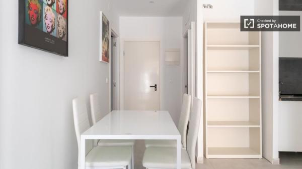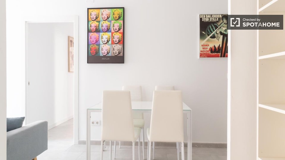 Dieses Zimmer in einer 5-Zimmer-WG befindet sich in Puerta del Ángel, Madrid. Die Wohnung ist komplett möbliert und bietet Annehmlichkeiten wie eine voll ausgestattete Küche mit Backofen und einen Fernseher im Gemeinschaftsbereich. Ein Balkon lädt zum Entspannen ein, und ein Aufzug sorgt für hohen Wohnkomfort. Spotahome hat die Unterkunft persönlich auf Qualität und Standards geprüft.