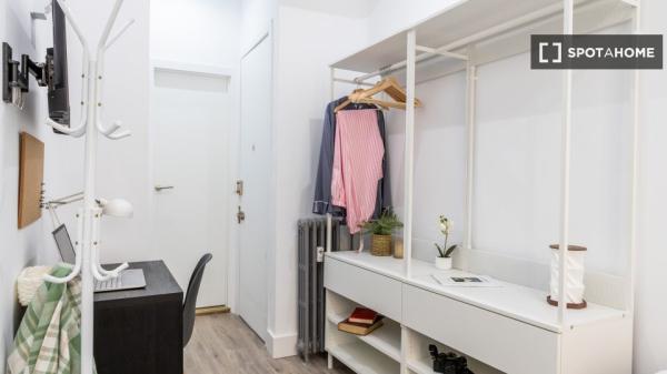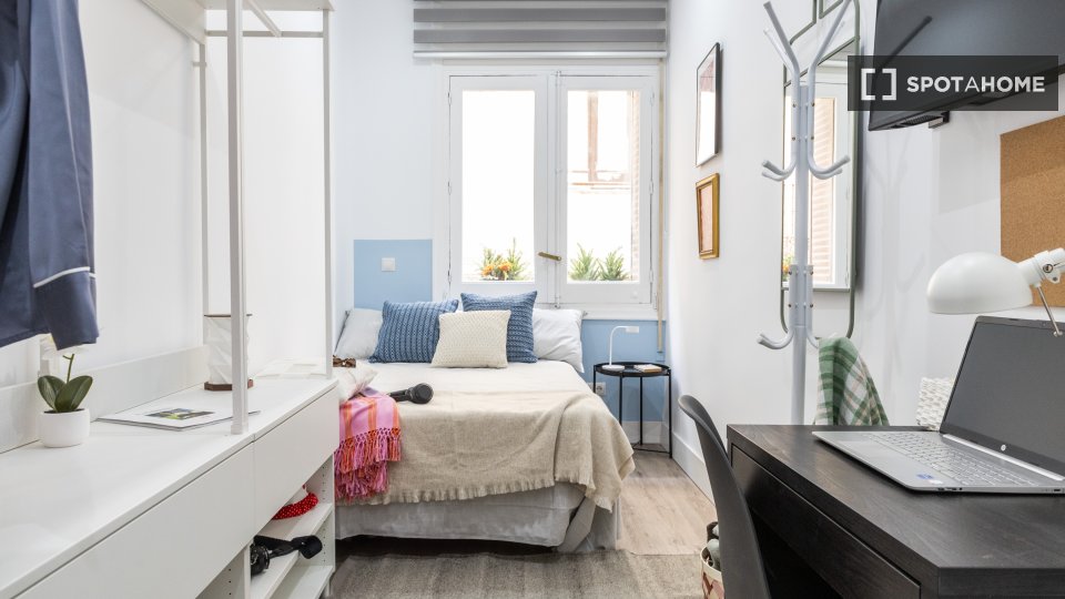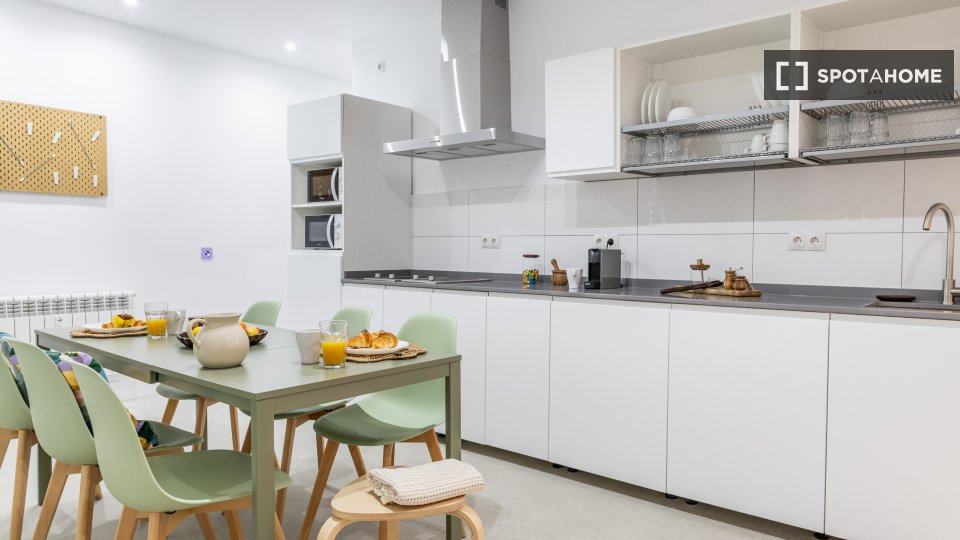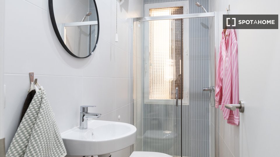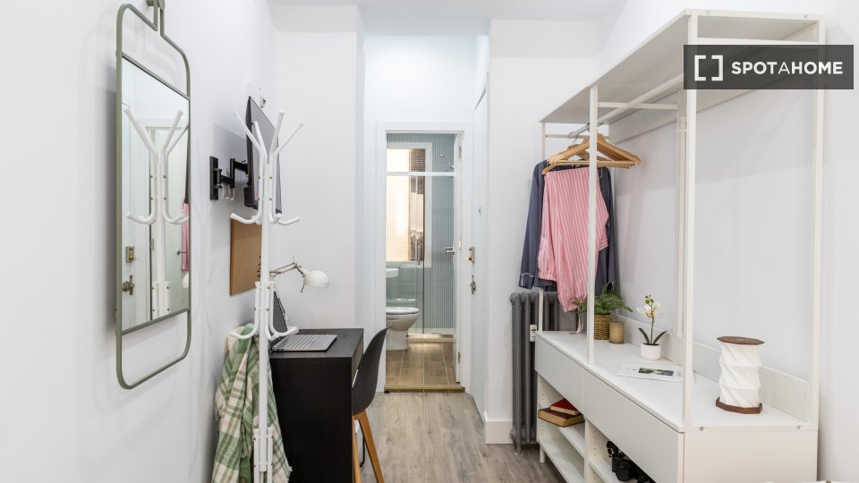 Diese voll möblierte 9-Zimmer-WG in Universidad, Madrid, ist ideal für Berufstätige oder Studierende. Zur Ausstattung gehören individuell regulierbare Klimaanlagen, eine voll ausgestattete Küche, ein Balkon oder eine Terrasse sowie eine Gemeinschaftswaschmaschine. Alle Nebenkosten sind inklusive, sodass Sie sich rundum wohlfühlen. Bevorzugt werden Mieterinnen. Die WG ist ausschließlich für Singles geeignet; Paare und Übernachtungsgäste sind nicht gestattet.