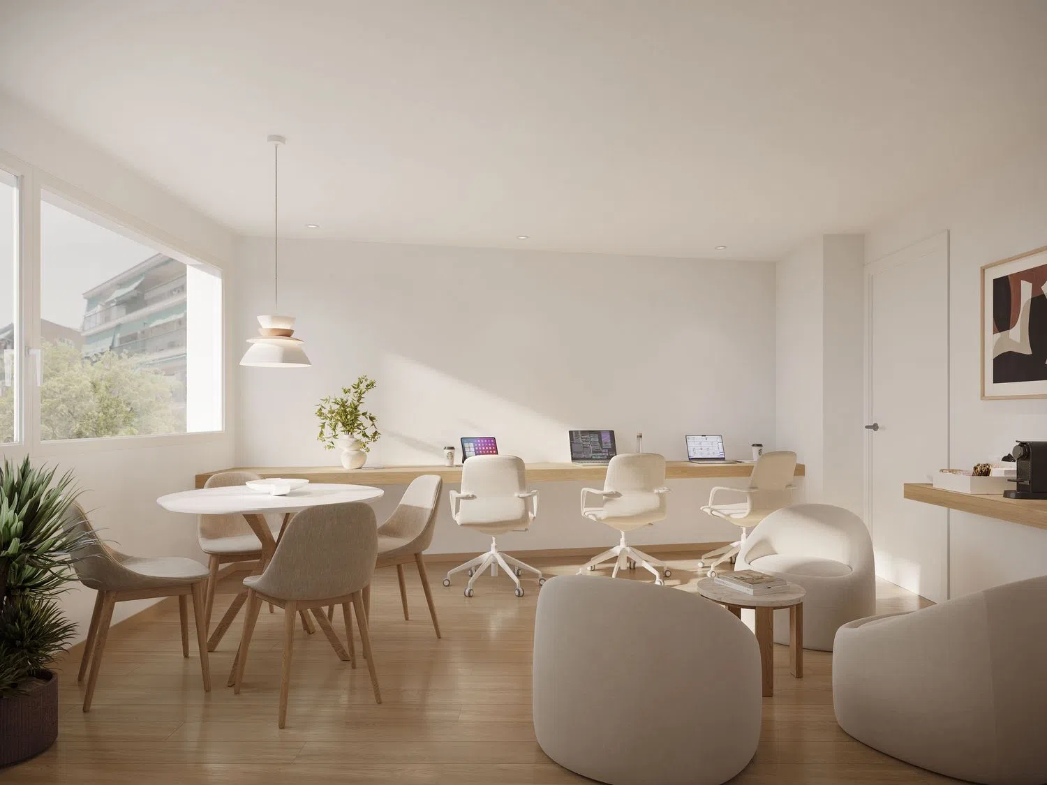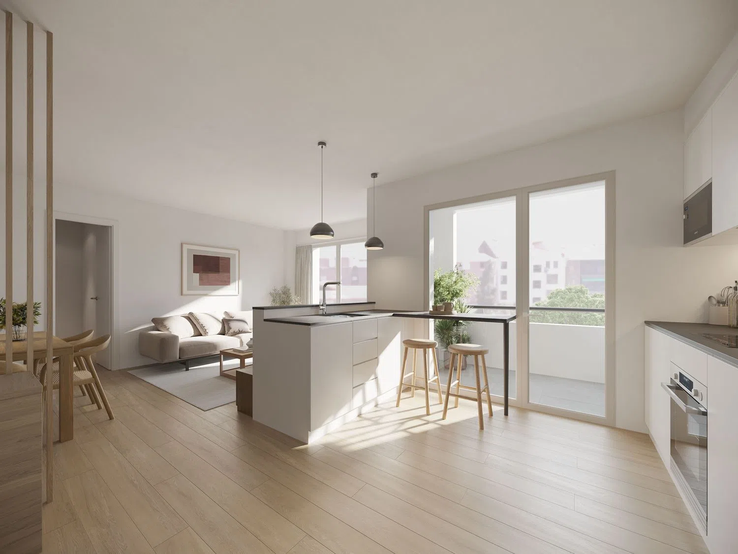 Jede Wohnung ist mit erstklassigen Materialien und modernen Technologien ausgestattet. Dazu gehören Luft-Wärmepumpensysteme für Heizung und Kühlung, Fußbodenheizung und Vorkehrungen für Klimaanlageninstallation. Weitere Highlights sind hochwertige Küchen mit glänzenden, dämpfungsmechanismen ausgestatteten Möbeln, sowie stilvolle Bäder von renommierten Marken wie Roca und Porcelanosa.