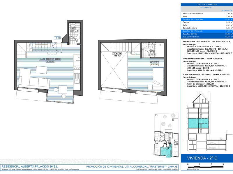 Promoción de viviendas en Paseo Alberto Palacios 26, la mejor calle de Villaverde, calle con tráfico restringido a autobuses y residentes, semipeatonal, edificio dotado de garaje y trasteros. Principal calle comercial del distrito, junto a las estaciones de metro y cercanías, mercado de abastos y parque Plata y Castañar.Viviendas con ventilación cruzada (doble orientación a calle y zonas comunes interiores). Posibilidad de personalización de las viviendas sobre plano.Ubicado en la principal arteria peatonal y comercial de Villaverde, con buenas comunicaciones tanto por transporte privado como público (A-42, A-4, A-45 y M-40). Próximo a estaciones de metro y cercanías Villaverde Alto (500 metros, 5 minutos andando), estación de Puente Alcocer y diferentes líneas de autobús en la misma puerta.Licencia concedida y obras iniciadas con fecha prevista de entrega a finales de 2024.Áticos y viviendas de tres dormitorios disponibles (consultar opciones).Trasteros desde 8.000€ unidad.Plazas de garaje desde 18.000€ unidad.
