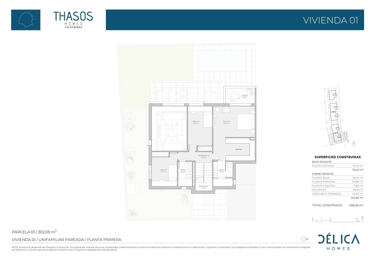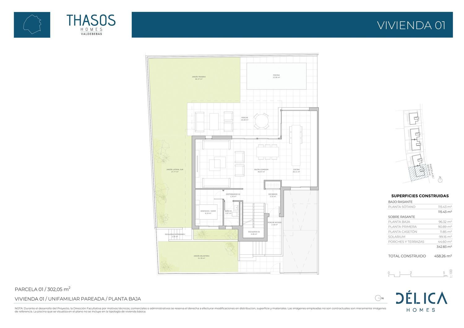 Licencia solicitada y suelo señalizado.Viviendas unifamiliares exclusivas de 5 y 6 dormitorios personalizables en una de las mejores zonas de Valdebebas.Grandes espacios llenos de detalles y calidadVivir en THASOS HOMES significa disfrutar de una vivienda con elevadas calidades que acompañan a tu estilo de vida: único y personal. Las cuidadas líneas arquitectónicas de las viviendas unifamiliares pareadas y vivienda aislada, que conforman este conjunto residencial, potenciarán la exclusividad de vivir en un hogar diseñado para ti.Cada vivienda dispone de un amplio jardín, creando tu espacio soñado, para que puedas disfrutar de momentos inolvidables y puestas de sol únicas con tu familia y amigos en un emplazamiento único, a 2 minutos del parque forestal de Valdebebas y con salida directa a la M-11 y M-40.THASOS HOMES es mucho más que una casa; es un hogar; en el que podrás disfrutar del privilegio de tener la amplitud que necesitas, con todos los detalles que garantizan la comodidad y el confort que estás buscando.Se ha diseñado poniendo especial atención a la LUMINOSIDAD INTERIOR para que la luz sea la gran protagonista de tu hogar. Además, las viviendas de THASOS HOMES contarán con un consumo de energía eficiente y la posibilidad de incluir sistemas de generación sostenibles.El proyecto se desarrolla en parcelas de más de 300 m2 y una superficie de vivienda posible de hasta 470 m2, y posibilidad de 6 dormitorios, salón comedor, cocina, porches, zona de servicio, lavandería y hasta 5 baños y aparcamiento privado.Ofrecemos la posibilidad de personalización interior de las viviendas.Sin duda, THASOS HOMES es una apuesta segura por el bienestar y el confort de toda la familia.UNA CASA CON NOMBRE PROPIOSe han seleccionado las calidades más exclusivas y los mejores acabados. Si desea conocer información, puede solicitarla a través del mail y teléfono de contacto.