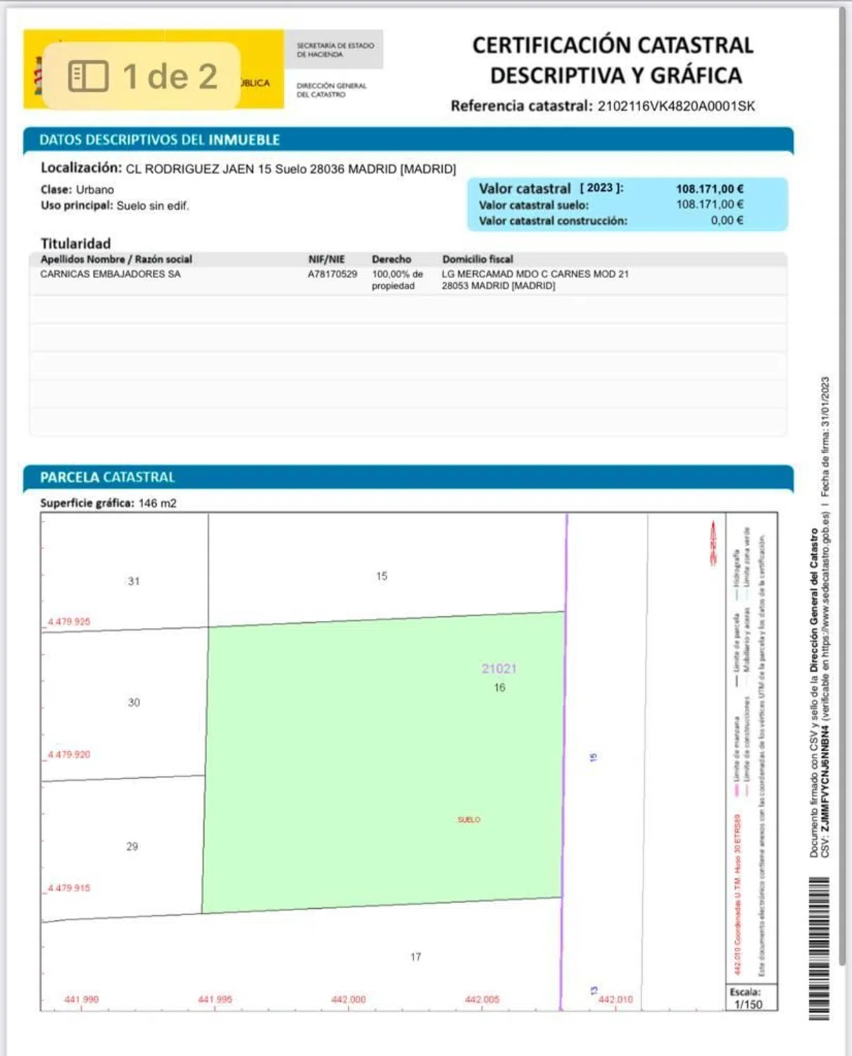 Solar urbanizable junto a Plaza Castilla Inmejorable ubicación. La parcela pertenece al ámbito de ordenación de la operación urbanística Madrid Nuevo Norte, que implica el soterramiento de las vías de tren de Chamartín y toda una operación urbanística compleja que está en desarrollo constructivo pero aparentemente finalizada urbanísticamente en definición de geometría, usos.. . En concreto, la parcela está en el ámbito de ordenación del APE 05.31 Centro de Negocios de Chamartín. Esta parcela pertenece a una manzana futura de desarrollo urbanístico cuyo uso cualificado principal es el residencial y el uso cualificado secundario es el terciario comercial hasta 2.500 m2 de superficie de venta. El APE 05.31 define una urbanización, dentro de la cual está la parcela, que a día de hoy no está ejecutada, pero se debe ejecutar previamente a construir cualquier edificación e implantación de actividad. Tras la construcción urbana que describe el APE, cada manzana es objeto de parcelación. Se entiendo en temas legales, que el actual propietario de la parcela en el número 15 de la calle Rodríguez Jaén, tendrá una futura participación proporcional a la nueva urbanización (todo ello con proyectos de compensación urbanística que se deben desarrollar). En resumen, previo a la construcción e implantación de uso o actividad, se requiere desarrollar un proyecto de urbanización cumpliendo con la ordenación del APE, un proyecto de compensación que otorgue a cada actual propietario del suelo su porción del nuevo suelo, un proyecto de parcelación que cumpla con las normas urbanísticas del APE y que otorgue a las distintas parcelas la condición de solar para poder construir una edificación e implantar un uso o actividad. Es probable que todo esto esté en tramitación, lo desconozco, no hay datos al respecto en el visor urbanístico o en los antecedentes. Informaros que una vez desarrollada la urbanización, esa zona en la que está la parcela actual, está dentro del área de afección de la protección de la red viaria de ADIF y se requieren permisos especiales para autorizar las obras de nueva planta de edificación. También indicaros que en esa zona se podrán edificar hasta diez alturas, el uso cualificado principal es el residencial en grado 4 en categoría de protección pública. El uso cualificado segundario es el terciario comercial hasta mediano comercio.